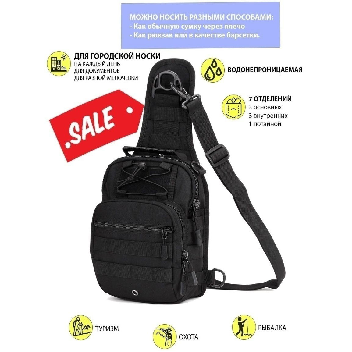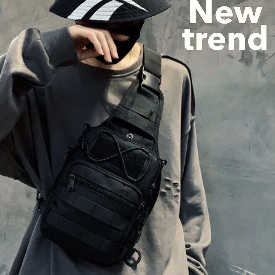 Чоловіча тактична багатофункціональна нагрудна сумка-слінг через плече із системою MOLLE з кордури!