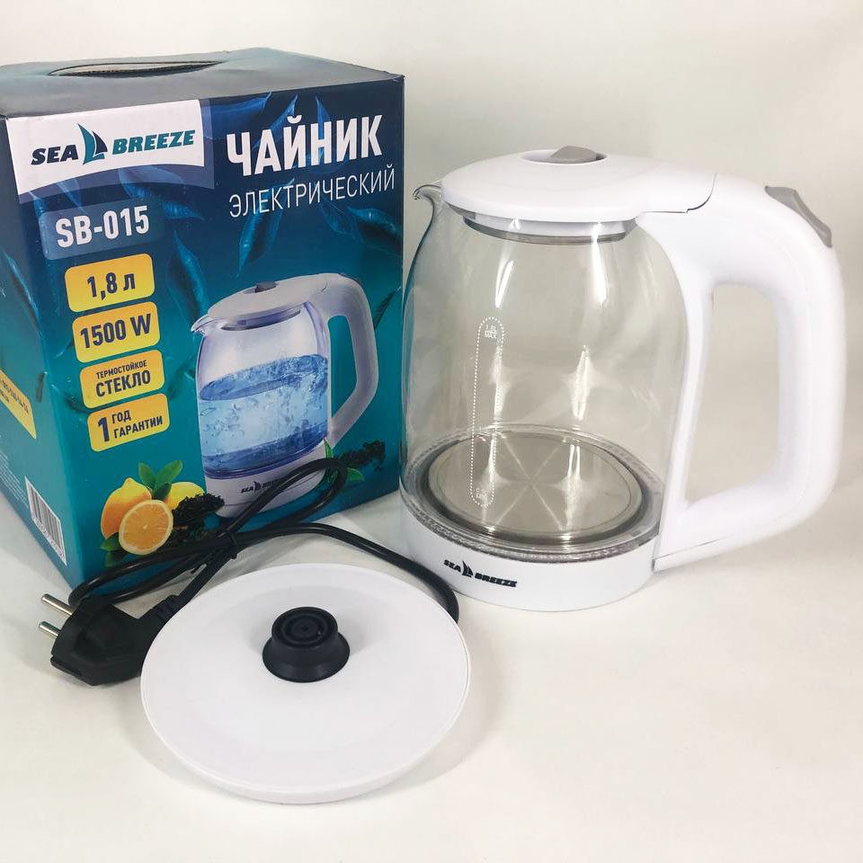Електрочайник SeaBreeze SB-015 1.8 л, чайники з підсвічуванням, електронний чайник, тихий електричний чайник