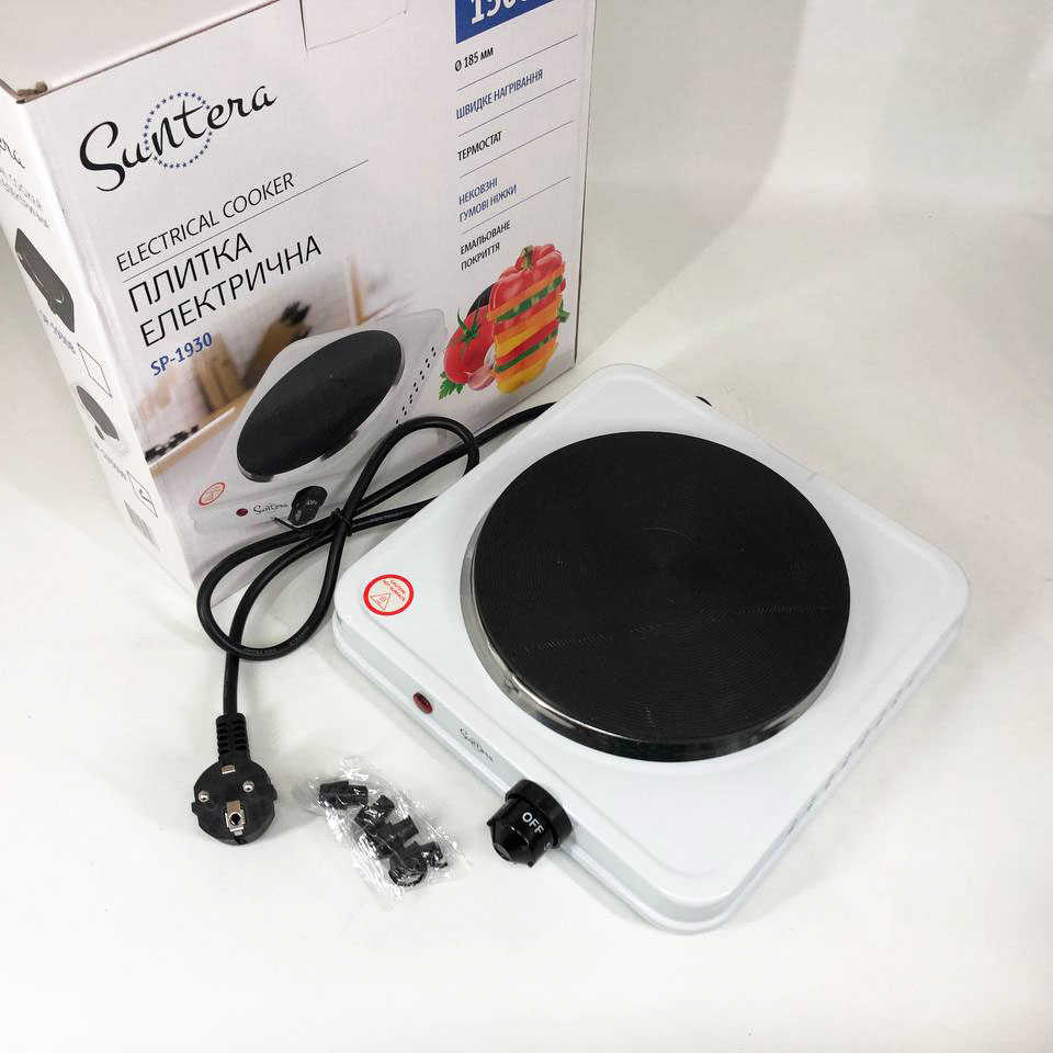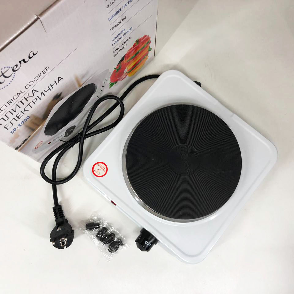Плита електрична Suntera SP-1930, електроплита 1 комфорка, електроплита кухонная. Колір: білий