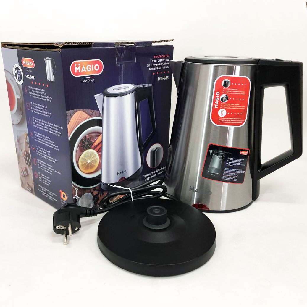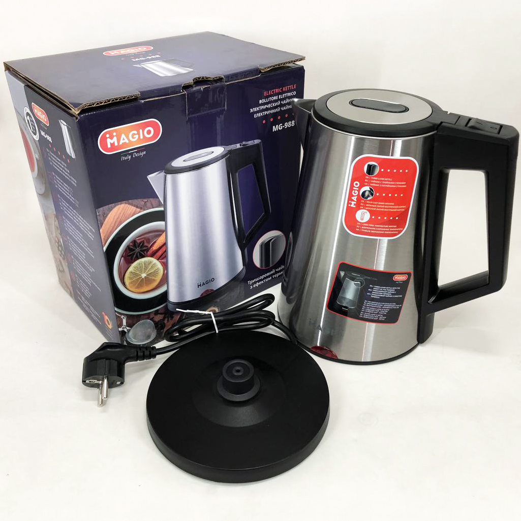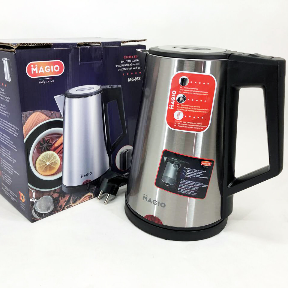 Електрочайник MAGIO MG-988, гарний електричний чайник, тихий електричний чайник, безшумний чайник