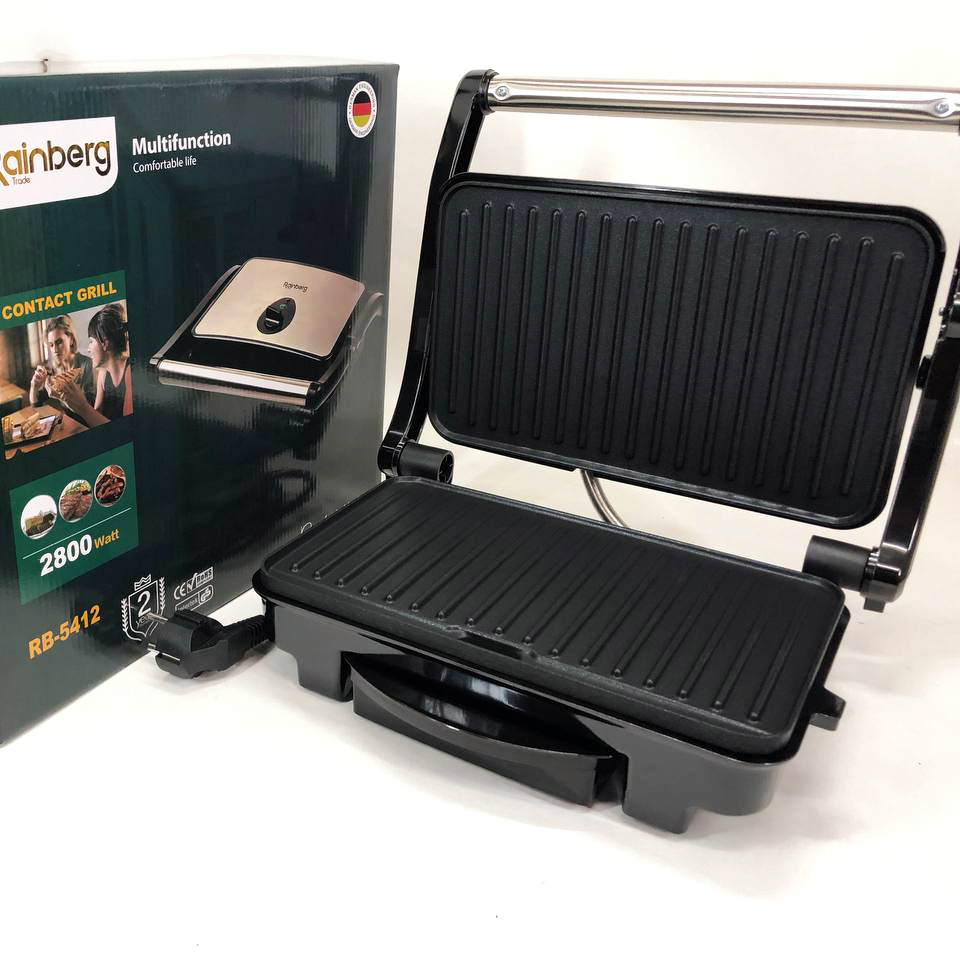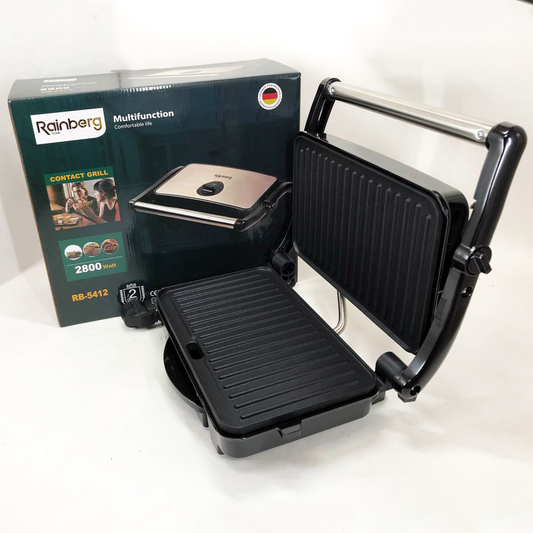 Гриль притискний Rainberg RB-5412 2800 Вт, Гриль для шаурми для дому, Гриль двосторонній контактний