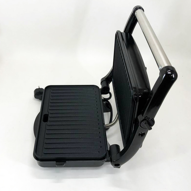 - Робочі панелі гриля мають антипригарне покриття, що дозволяє готувати їжу з мінімальним використанням жирів та олії.