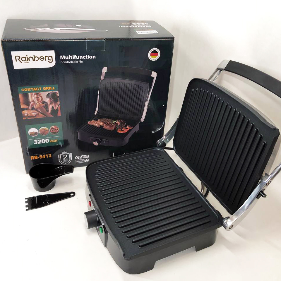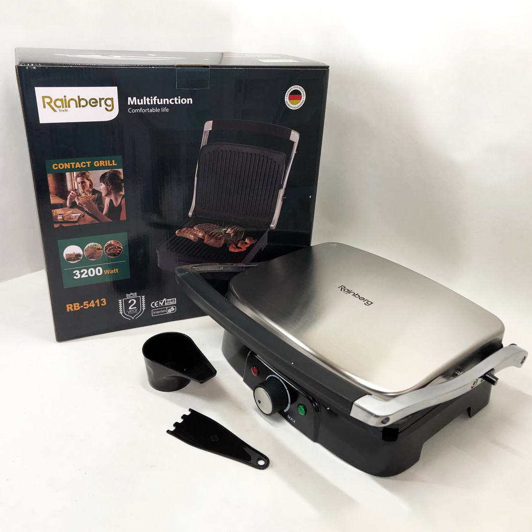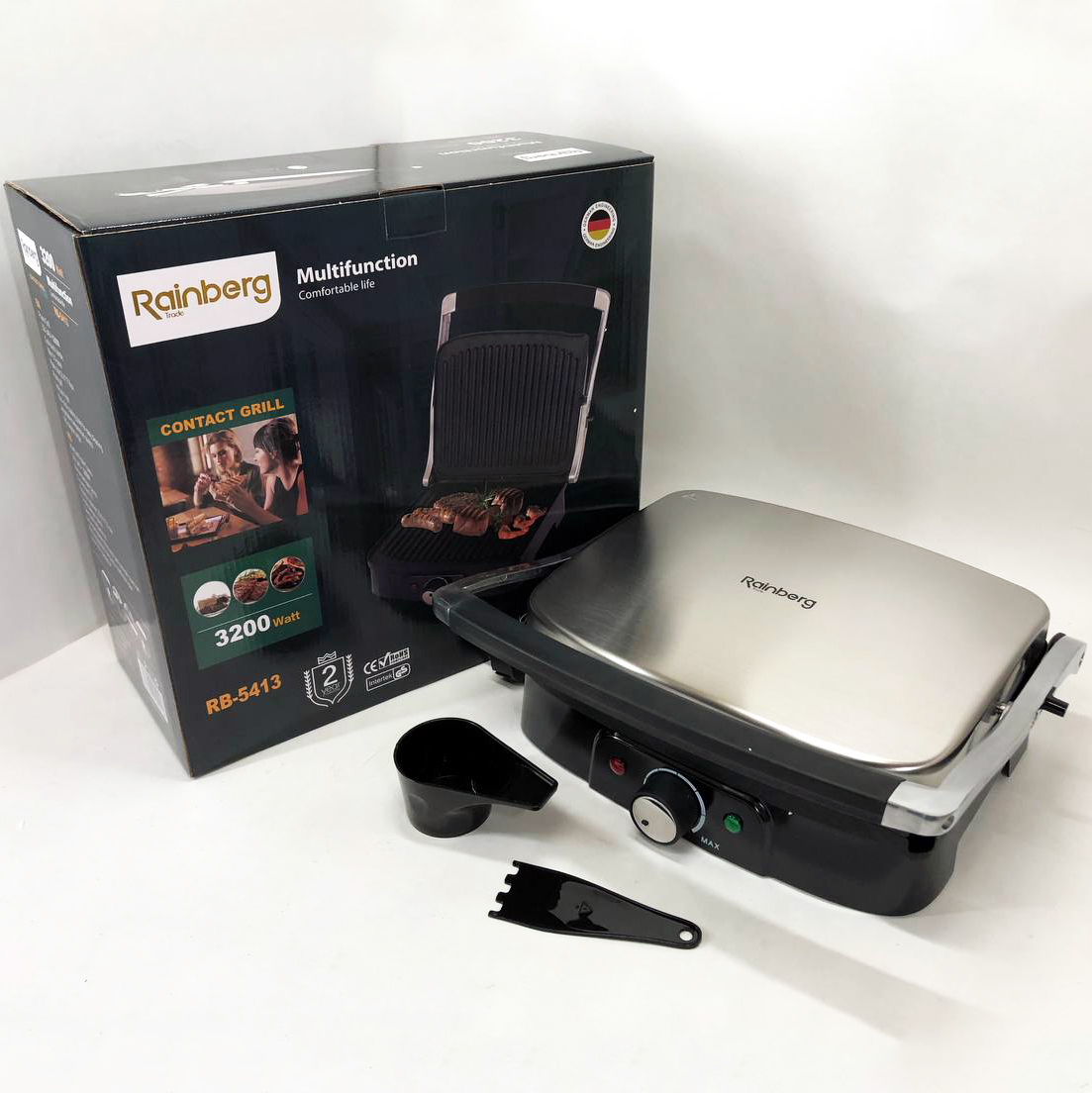Гриль притискний Rainberg RB-5413 терморегулятор антипригарний 3200 Вт нержавіюча сталь