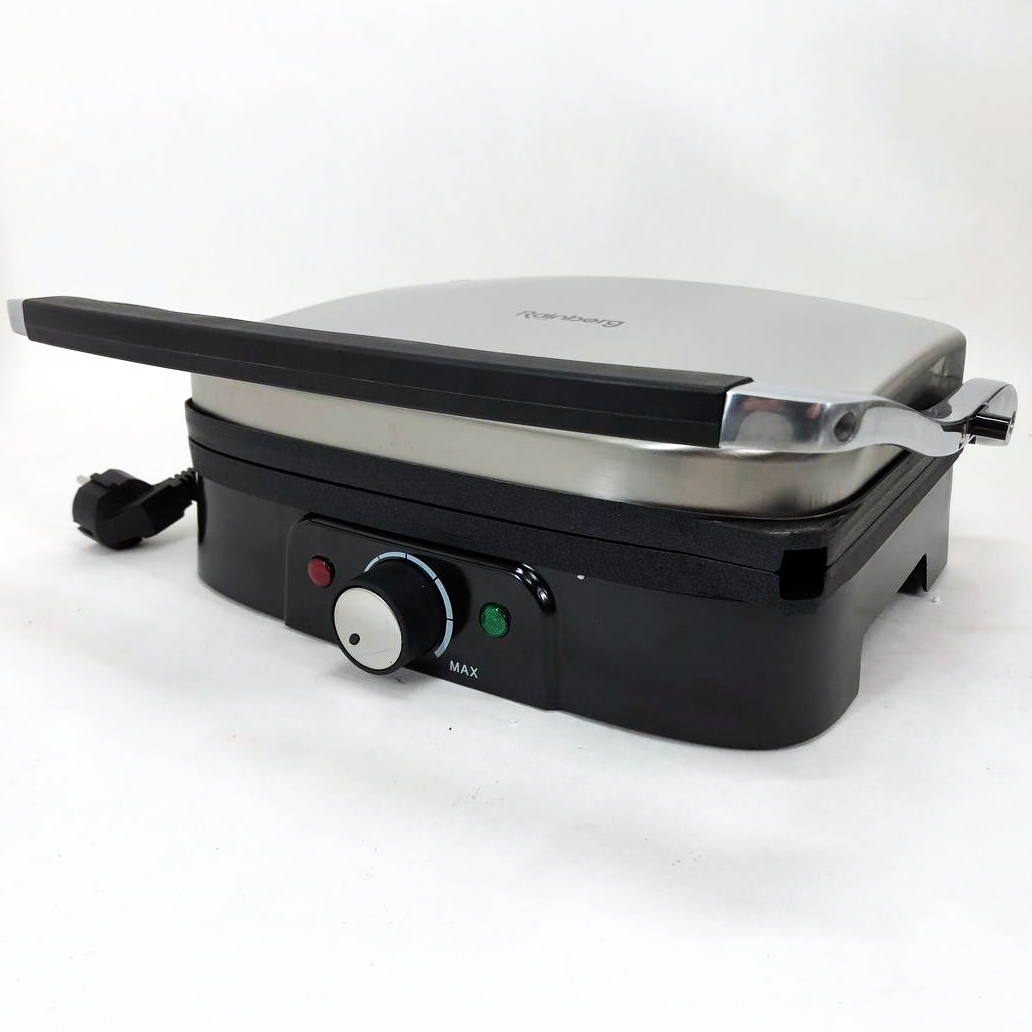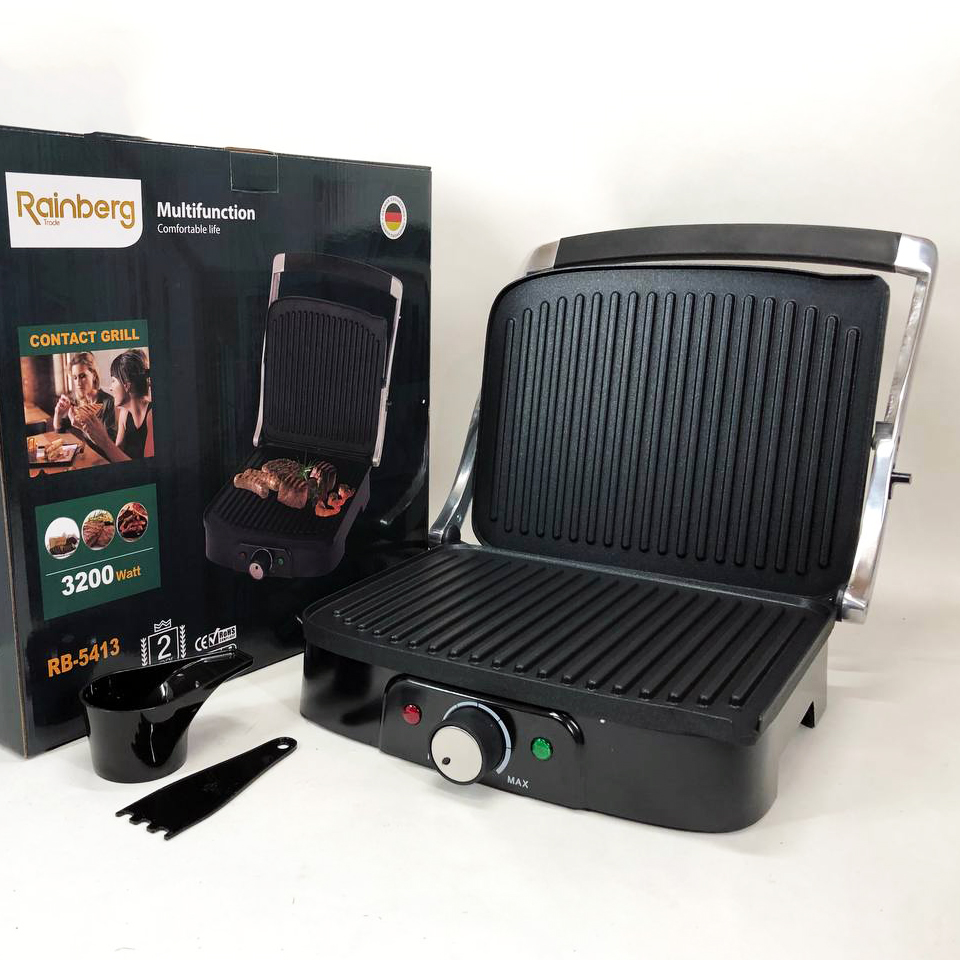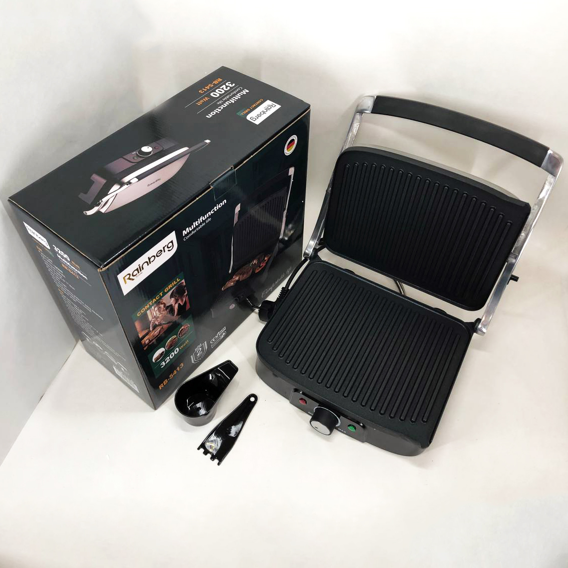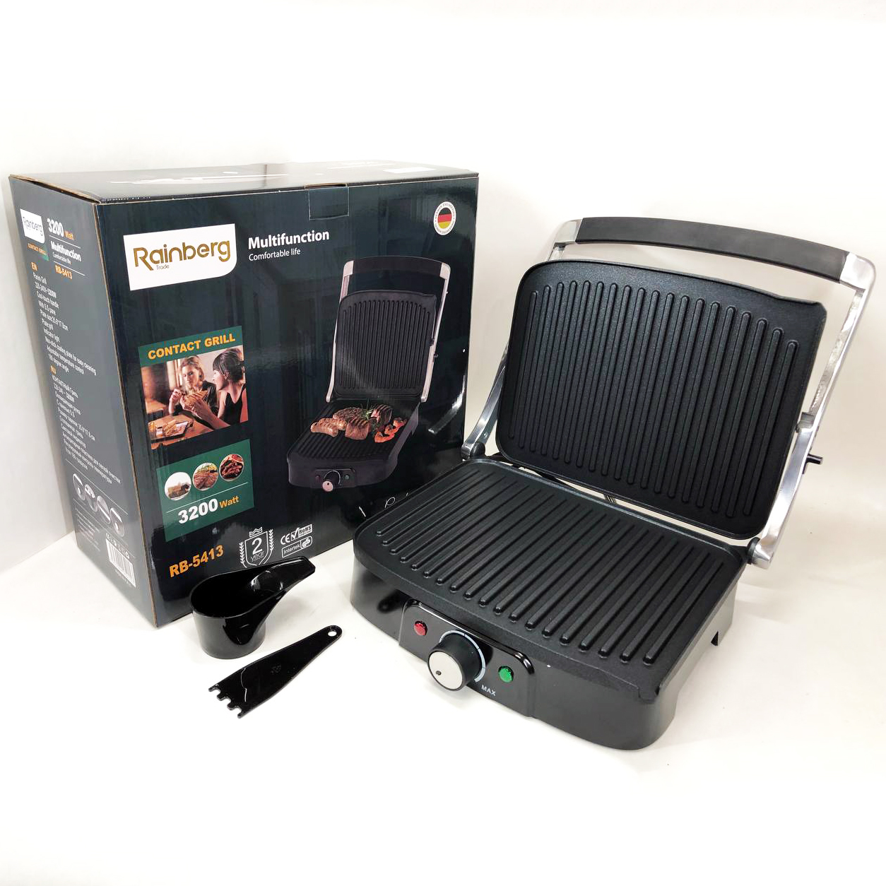 Гриль притискний Rainberg RB-5413 терморегулятор антипригарний 3200 Вт нержавіюча сталь