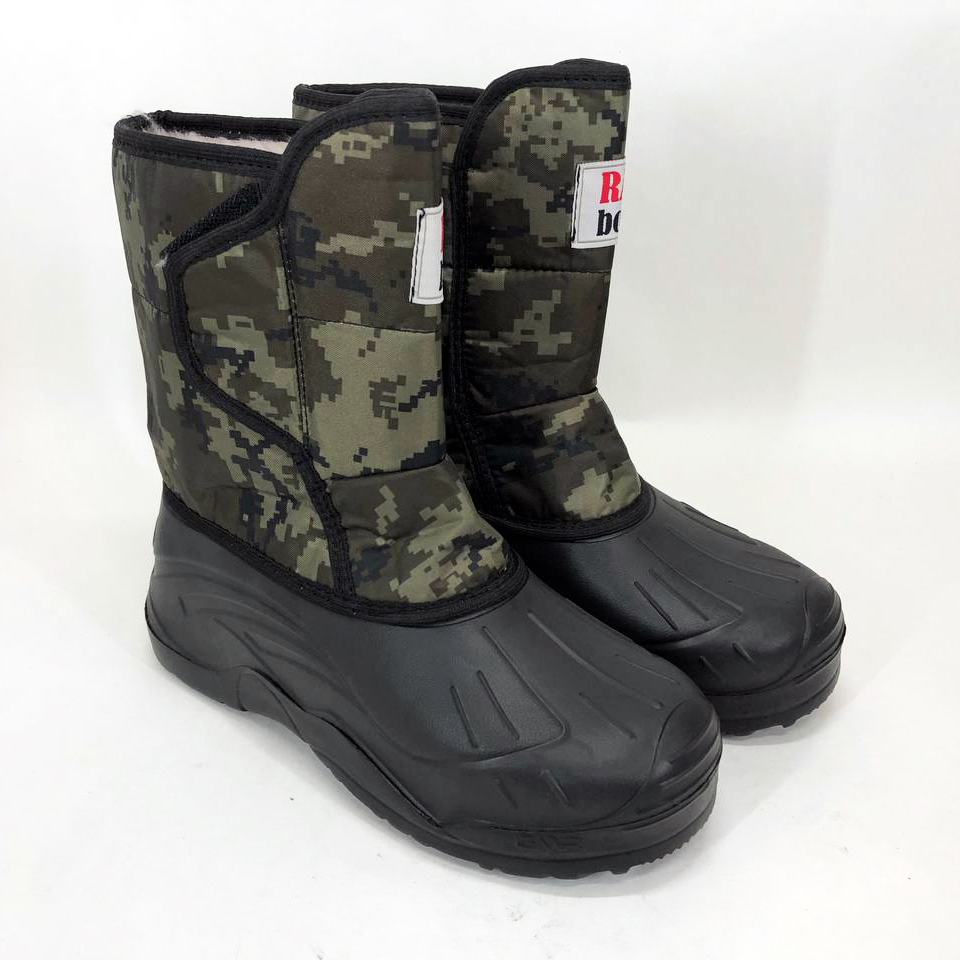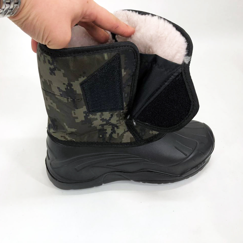 Чоловічі утеплені чоботи з камуфльованим верхом — це ідеальне взуття для активного зимового використання. Вони поєднують у собі захист від вологи, снігу та холоду завдяки водонепроникному полімерному низу та щільному утепленому текстильному верху. Внутрішнє хутро створює комфортні умови навіть під час сильних морозів. Застібка на липучці забезпечує зручне та швидке взування.