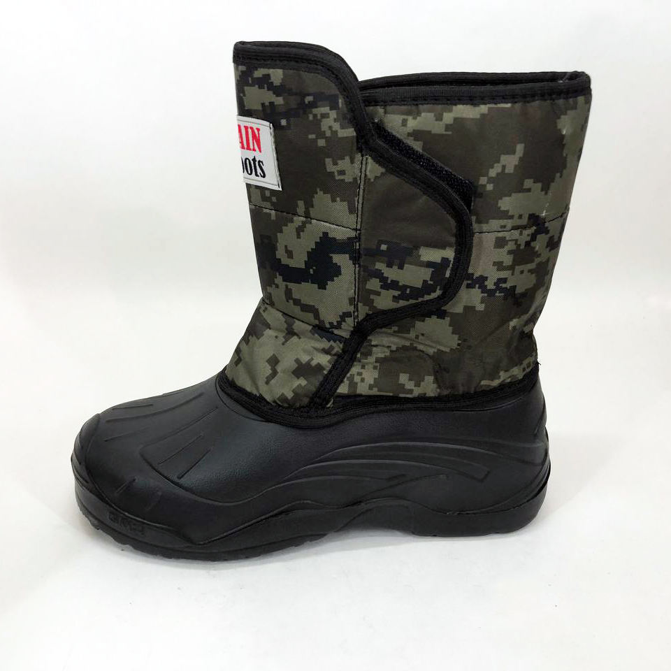 Модель вирізняється сучасним дизайном у стилі мілітарі, що додає оригінальності та маскувального ефекту — ідеально для мисливців, рибалок або просто поціновувачів практичного стилю. Потовщена рельєфна підошва гарантує чудове зчеплення з поверхнею, знижуючи ризик ковзання. Ці чоботи однаково добре підходять для міста та заміських умов.