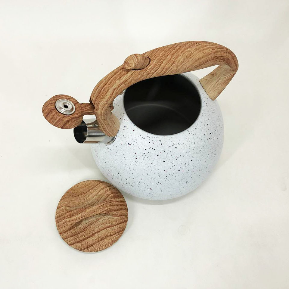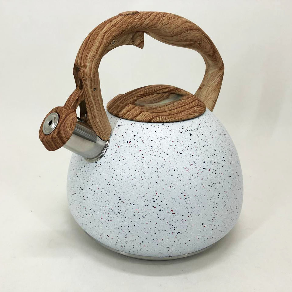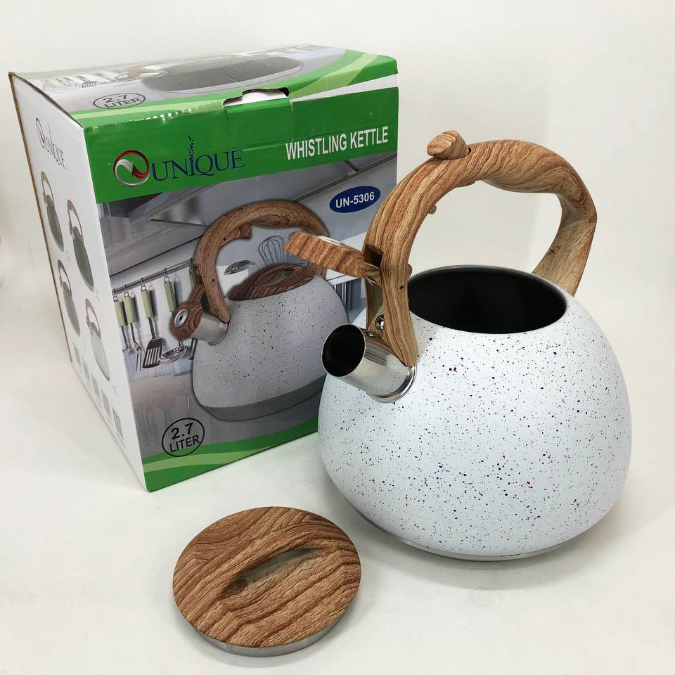 Чайник Unique зі свистком UN-5306 2,7л мармур, чайник для газової плитки, чайник на плиту. Колір: білий