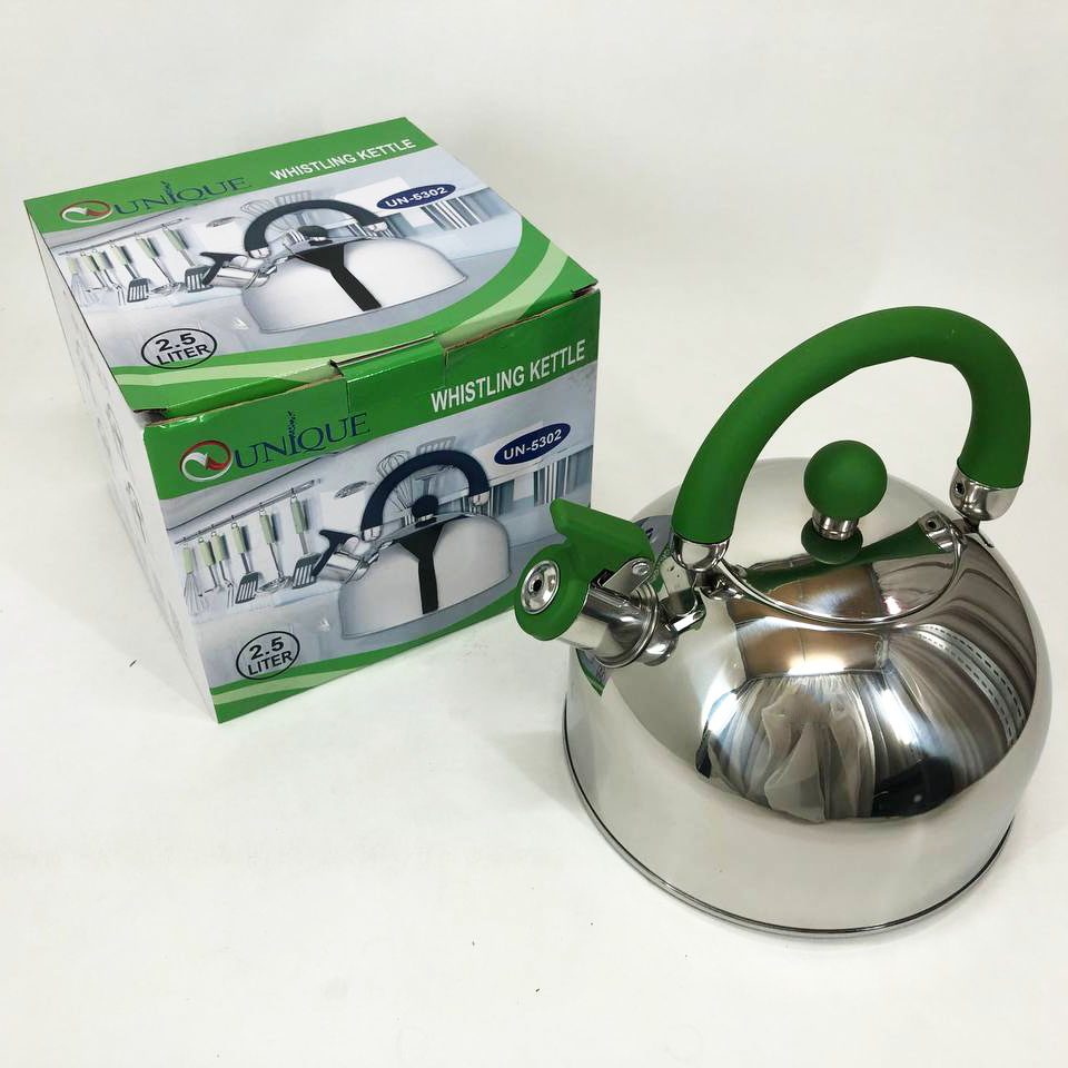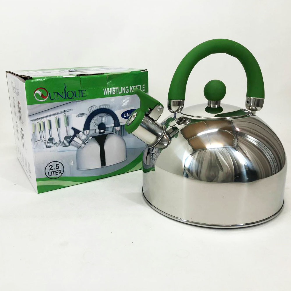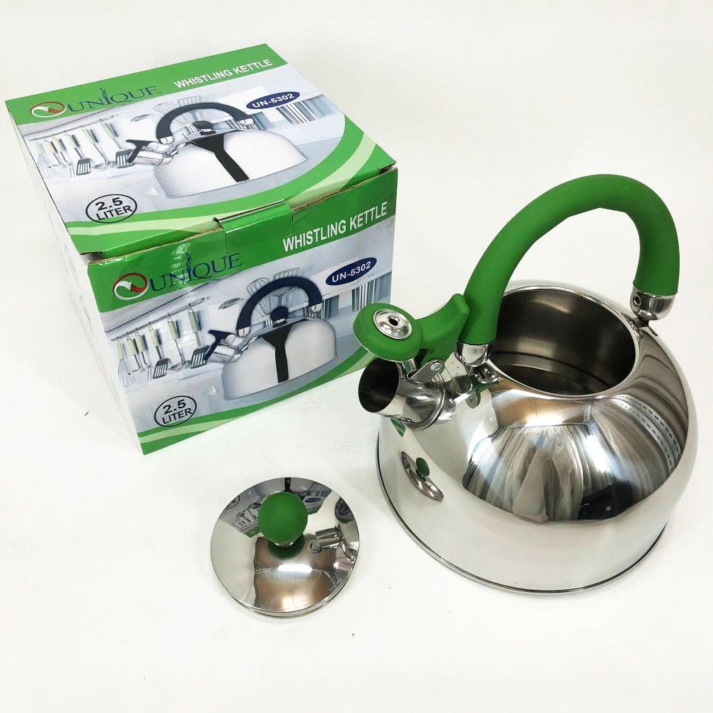 Чайник Unique со свистком UN-5302 2.5 л, хороший чайник со свистком, чайник на плиту. Цвет: зеленый