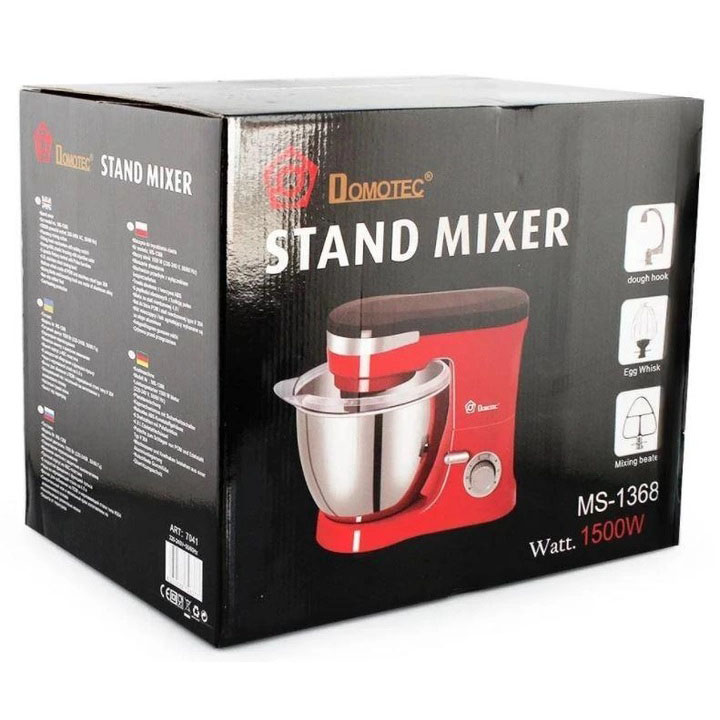 Планетарний міксер тістоміс Domotec MS-1368 – високоякісна кухонна машина для замісу тіста. Призначений для побутового та напівпрофесійного використання. Корпус виготовлений із міцного ABS пластику. Чаша для замісу виготовлена з нержавіючої сталі, знімна, надійно фіксується.