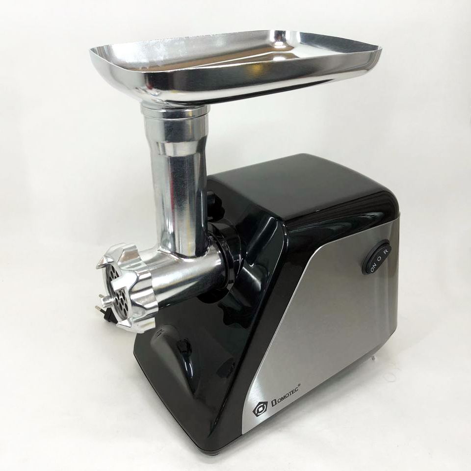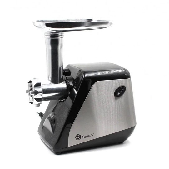 Електрична м’ясорубка з функцією соковижималки Domotec MS-2024 з насадкою для томатів і двома функціями подрібнення, нарізки та нарізки скибочками. М’ясорубка Домотек призначена для виготовлення фаршу з м’яса, риби, грибів, нарізки овочів та фруктів, профілювання пісочного та пельменного тіста. Електром’ясорубка з функцією соковижималки шнекового типу має функцію реверс, зворотне обертання ножів, що запобігає ущільненню продуктів усередині м’ясорубки та забезпечує якісне подрібнення.