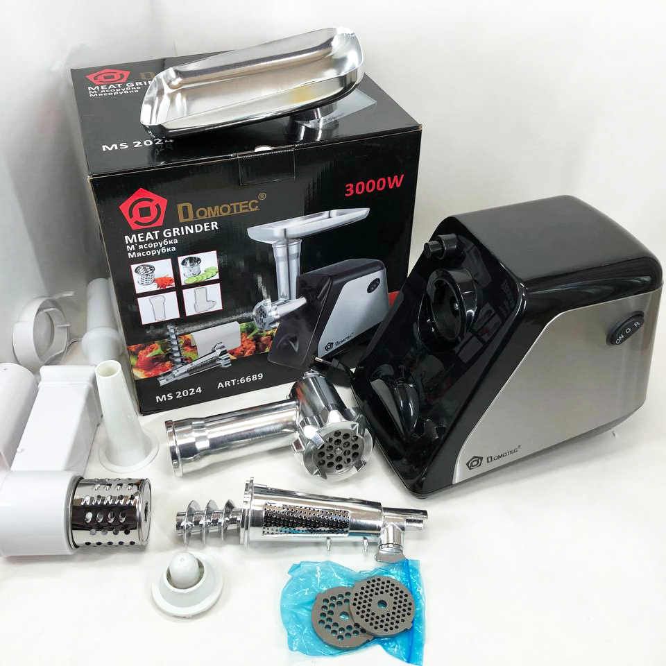 Електром'ясорубка, шатківниця та соковитискач DOMOTEC MS-2024 3000 Вт, томати, терки/шатківниці