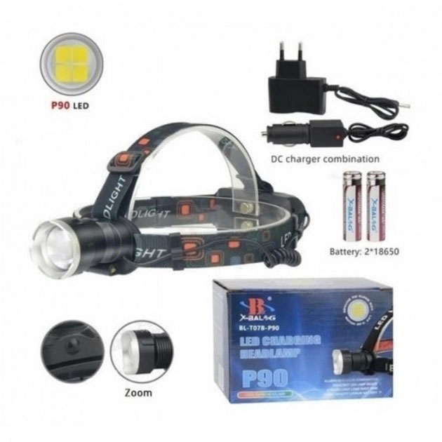 Налобний ліхтарик X-Balog BL-T07B-P90 – налобний акумуляторний ліхтар з лінзою для фокусування світлового потоку. Має три режими роботи: яскравий, економний та стробоскоп.