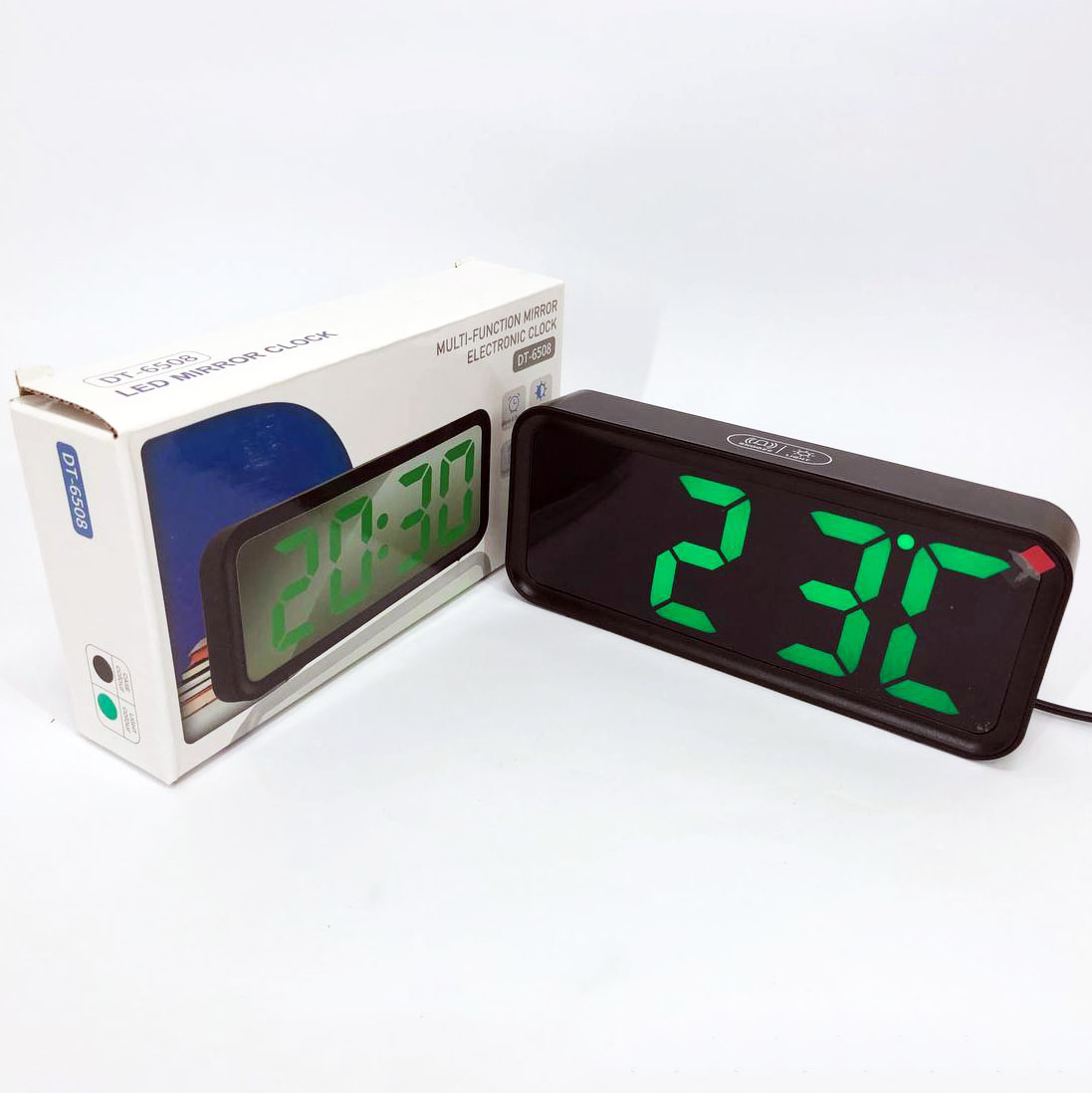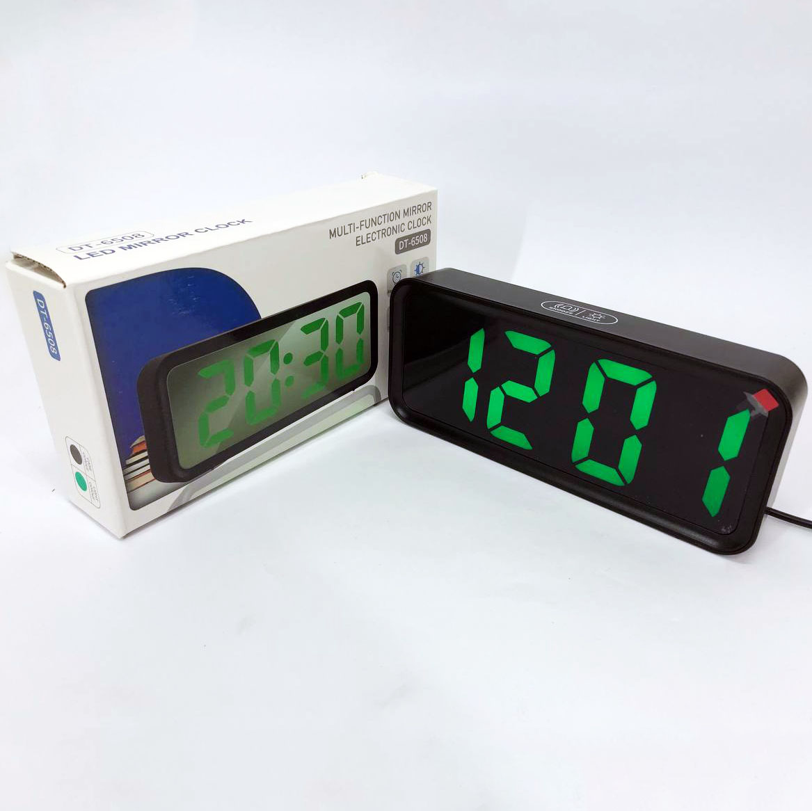 Годинник настільний DT-6508 з будильником та USB зарядкою із зеленим підсвічуванням, лід годинник настільний