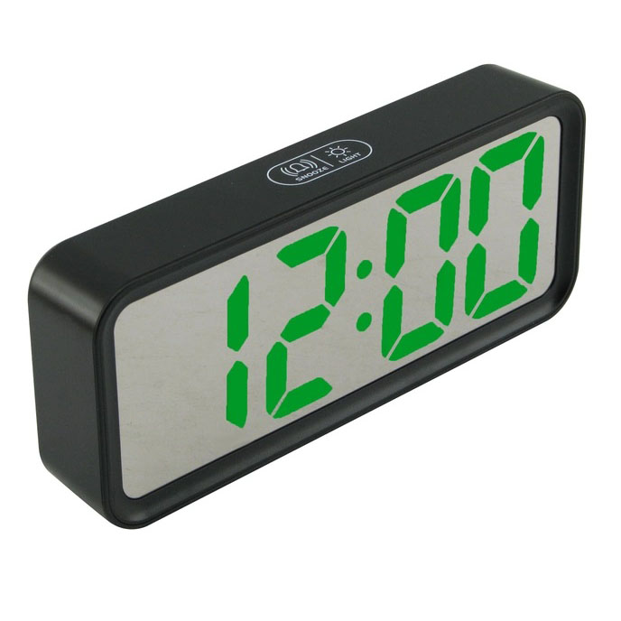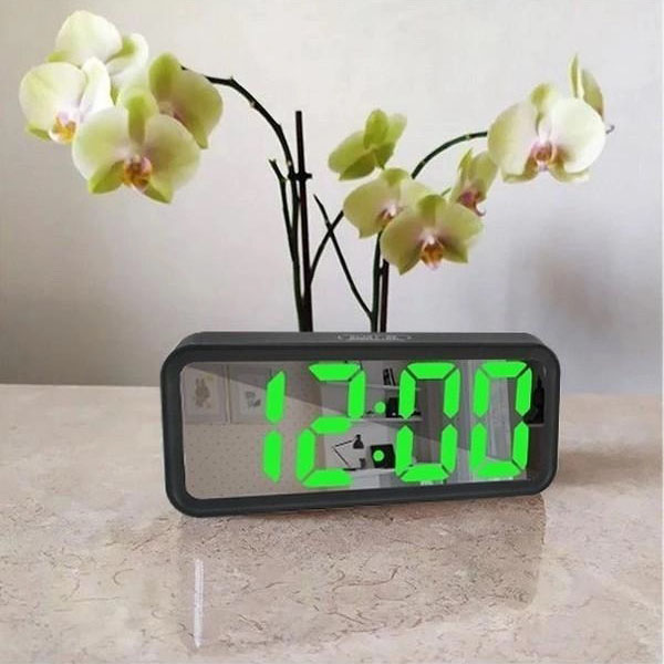 Електронний годинник з цікавим дзеркальним рішенням дисплея – це ефектний та необхідний елемент дизайну у Вашому інтер’єрі. Світлодіодне підсвічування дозволить Вам навіть у темну пору доби правильно зорієнтуватися в часі, а наполегливий дзвінок будильника приємно розбудить Вас у потрібний час і не дасть Вам спізнитися на важливу зустріч.