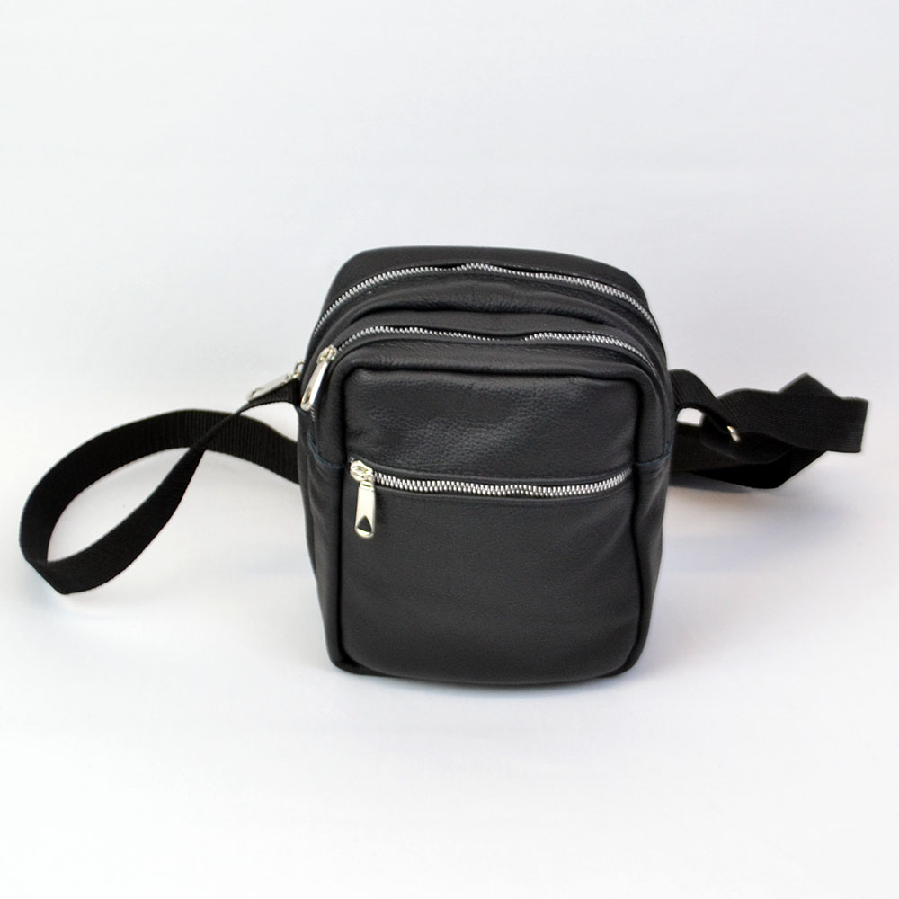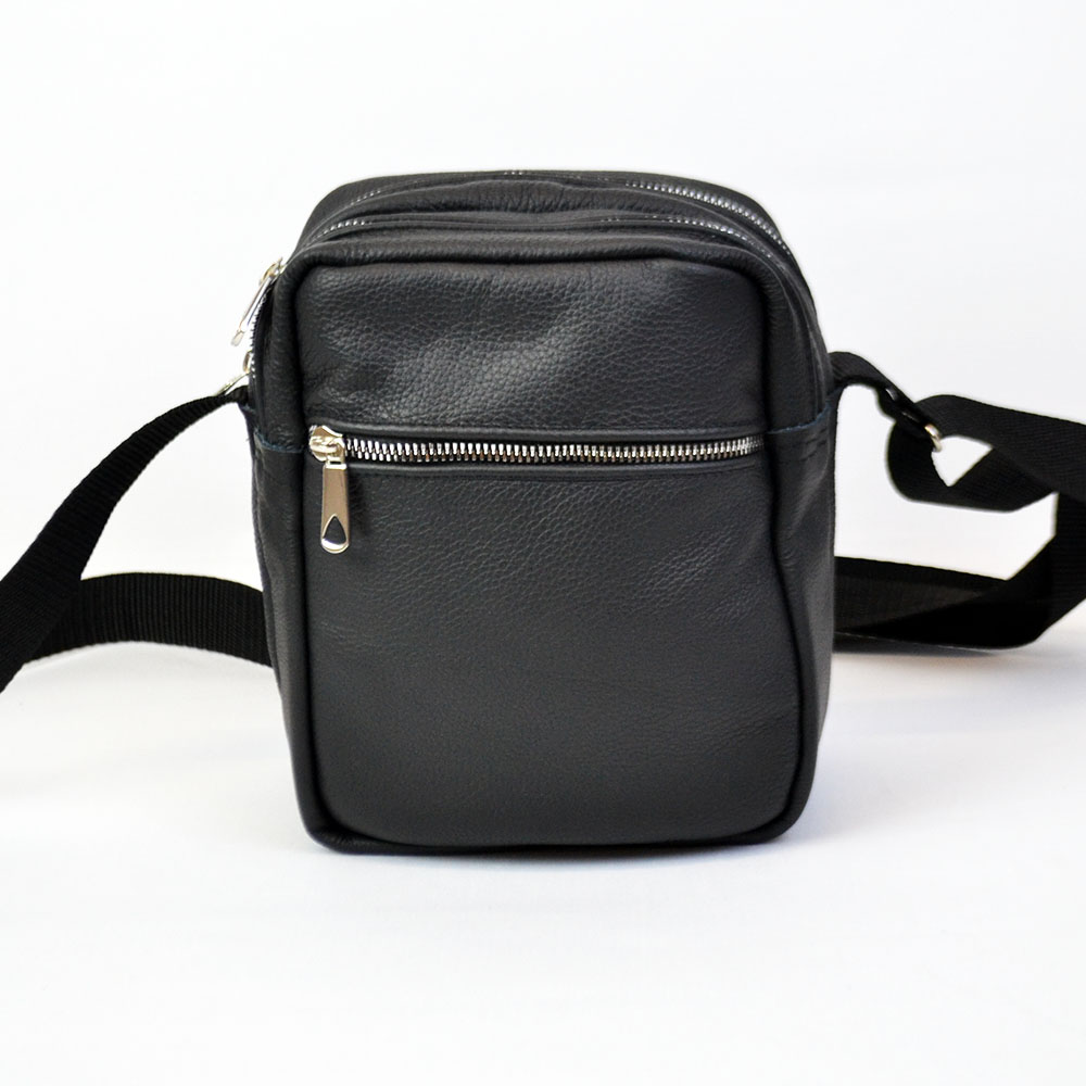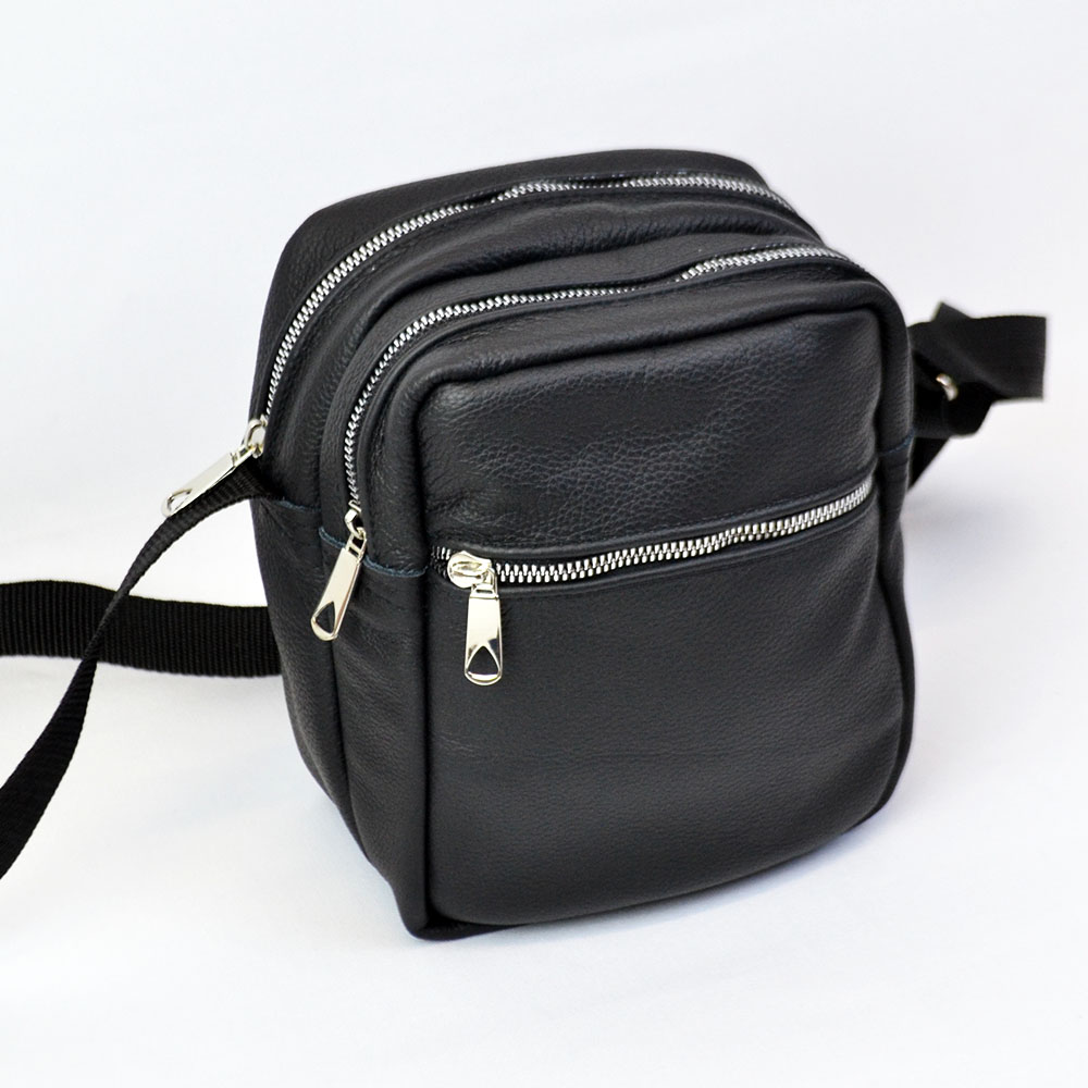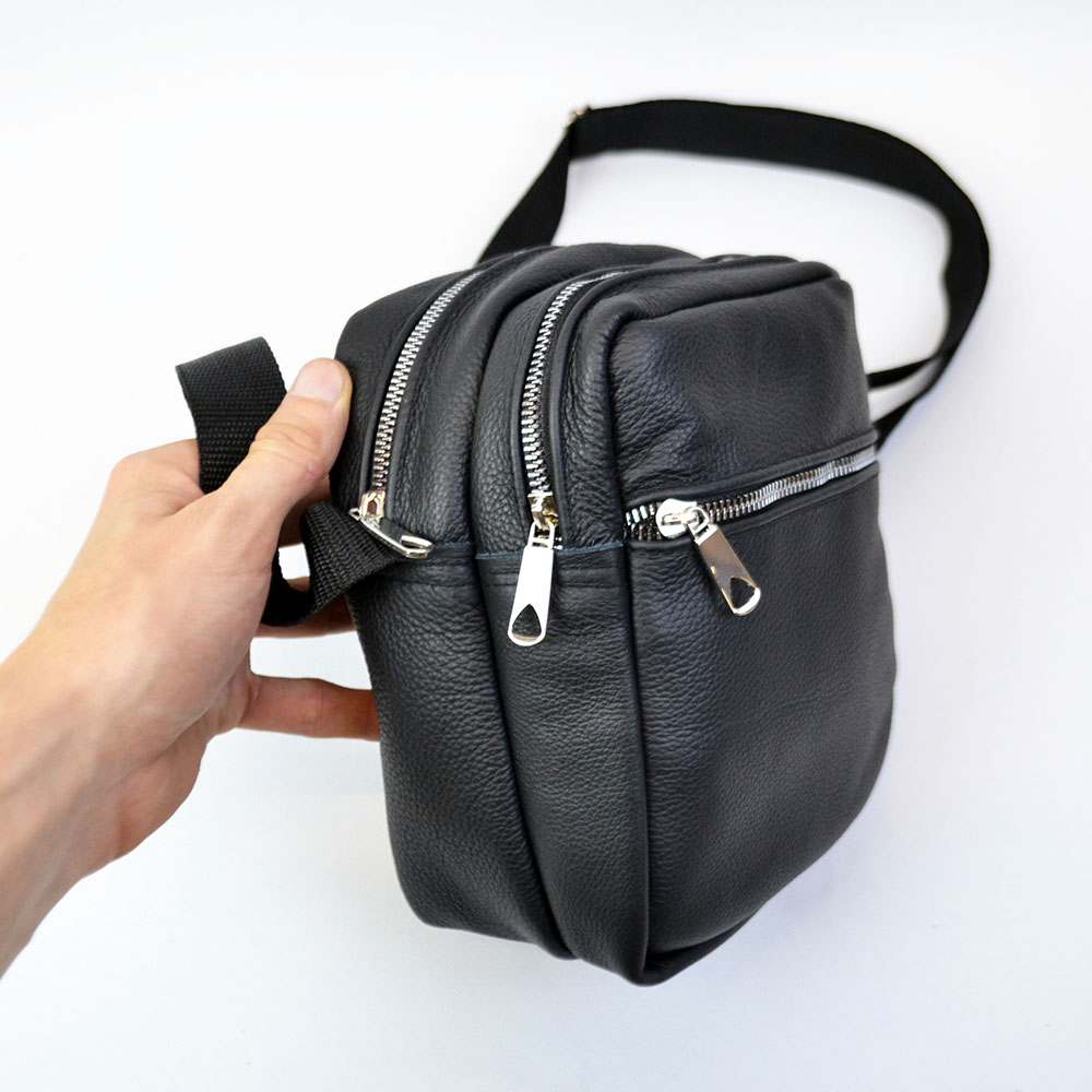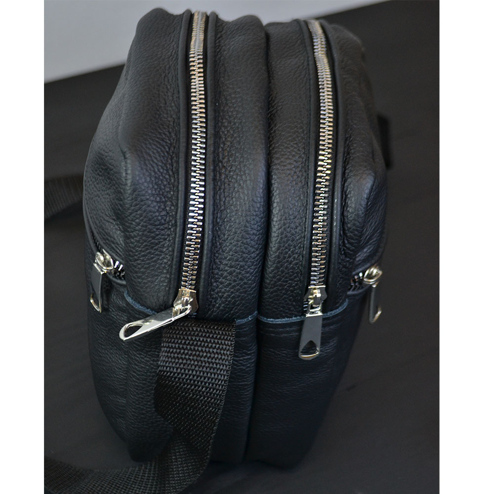 Якісна чоловіча сумка - месенджер з натуральної шкіри на 4 кишені зі срібною блискавкою