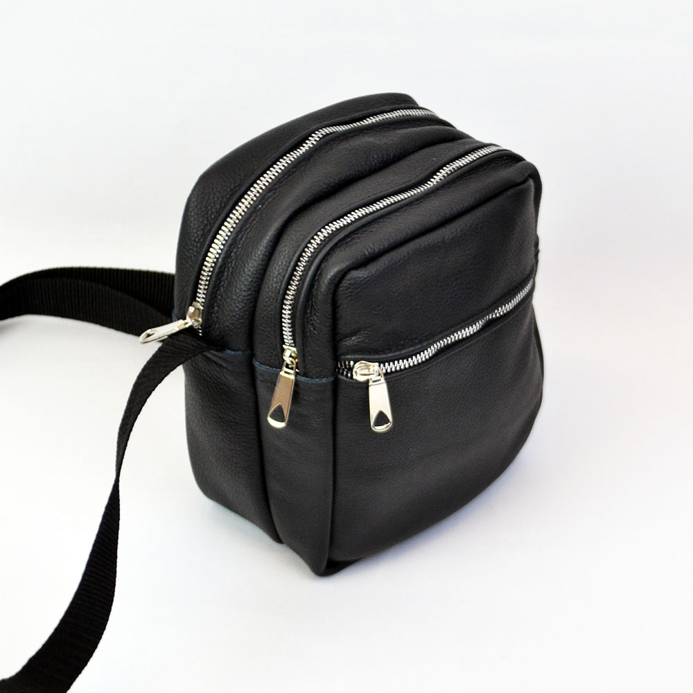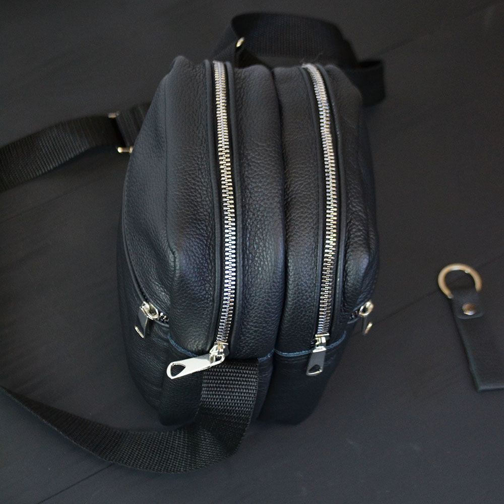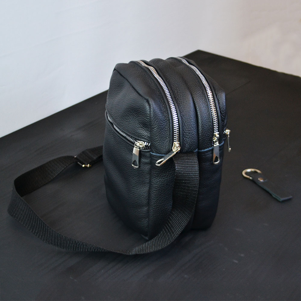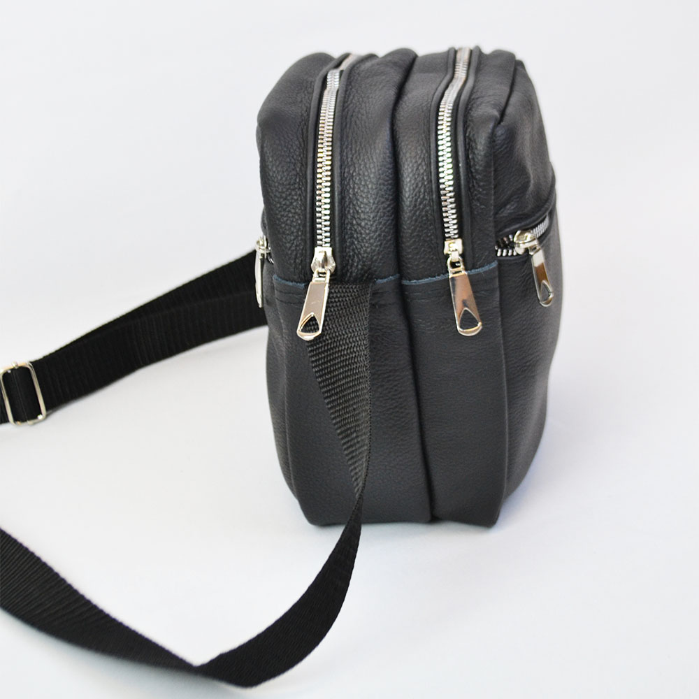 Якісна чоловіча сумка - месенджер з натуральної шкіри на 4 кишені зі срібною блискавкою