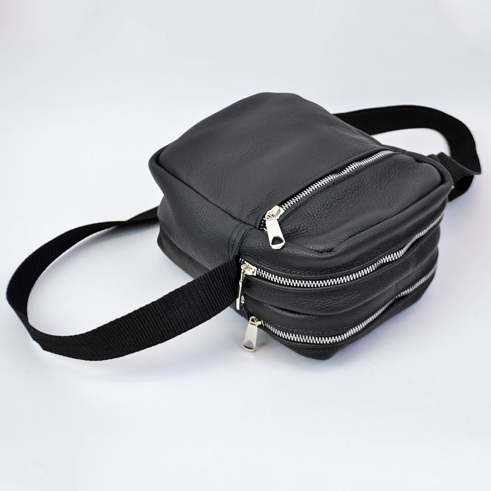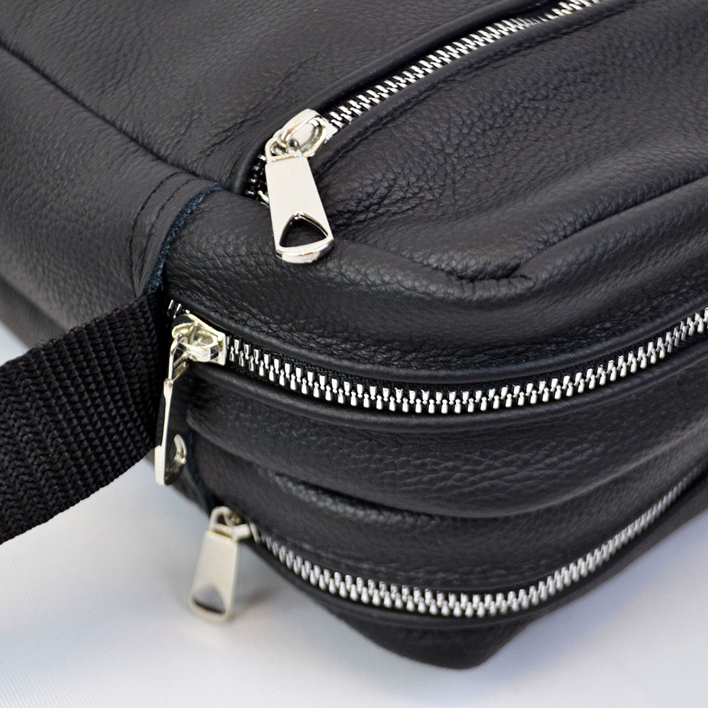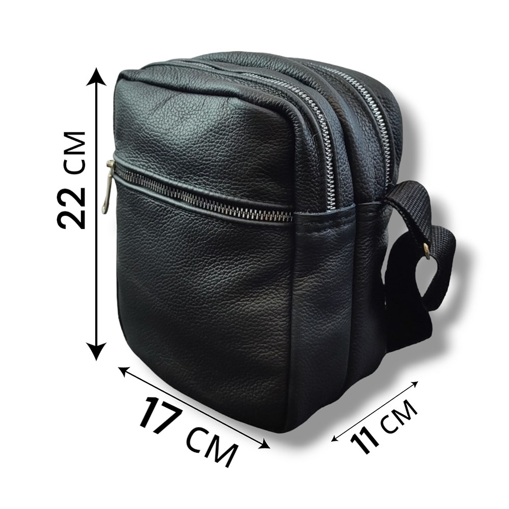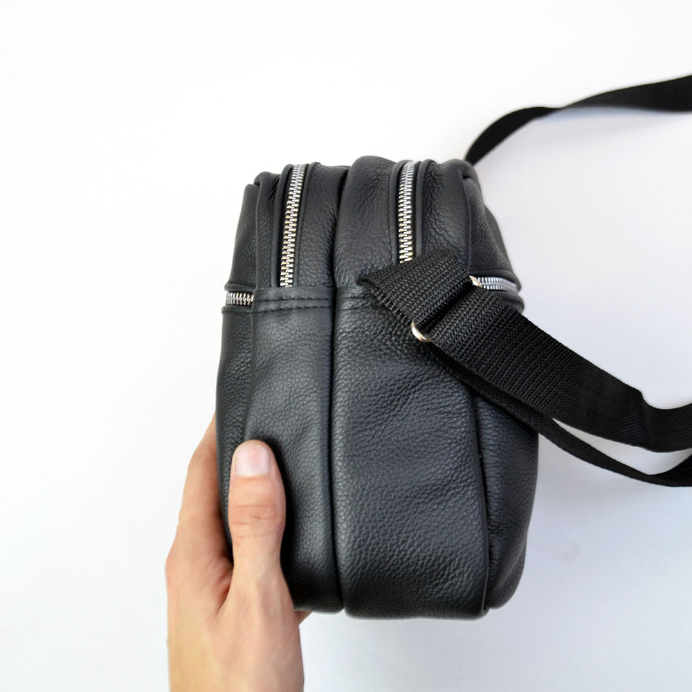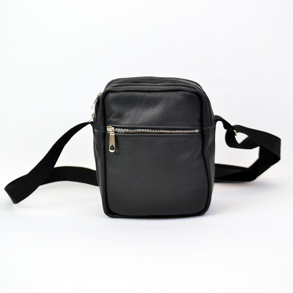 Якісна чоловіча сумка - месенджер з натуральної шкіри на 4 кишені зі срібною блискавкою
