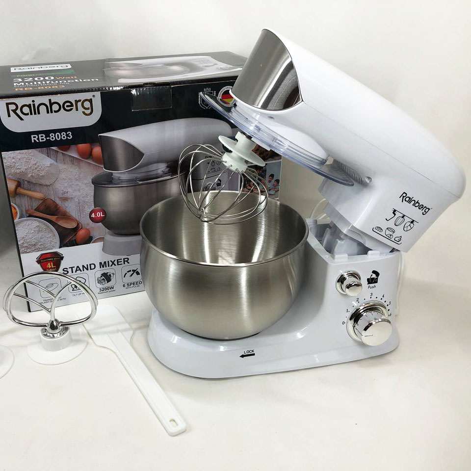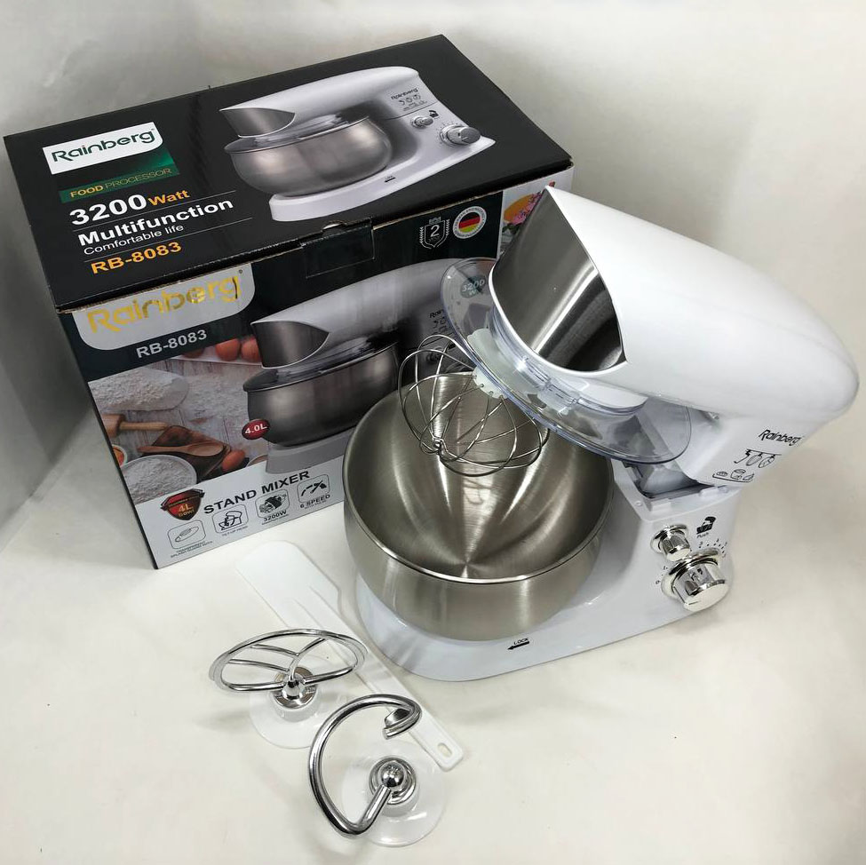 Електричний планетарний міксер тістоміс Rainberg RB-8083 3200 Вт з насадками. Колір: білий