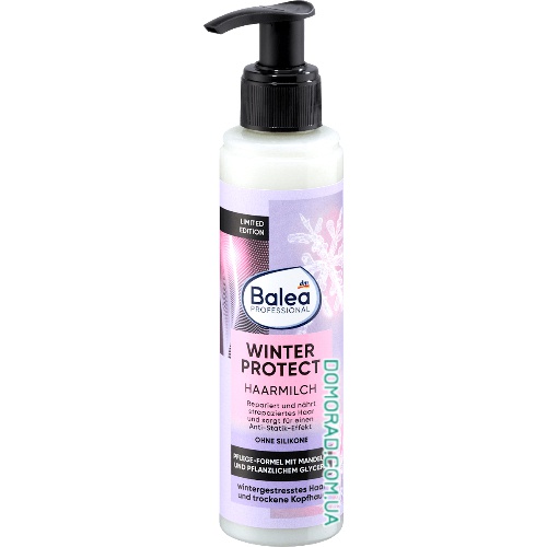 Молочко для волосся Balea Professional Hair Milk Winter Protect має формулу без силікону. Запобігає «розлітання» волосся завдяки своєму антистатичному ефекту та зберігає природну вологість у волоссі. Формула догляду також оптимально дбає про стресове взимку волосся та забезпечує легкість розчісування. Для чудово доглянутого та фантастично блискучого волосся.
