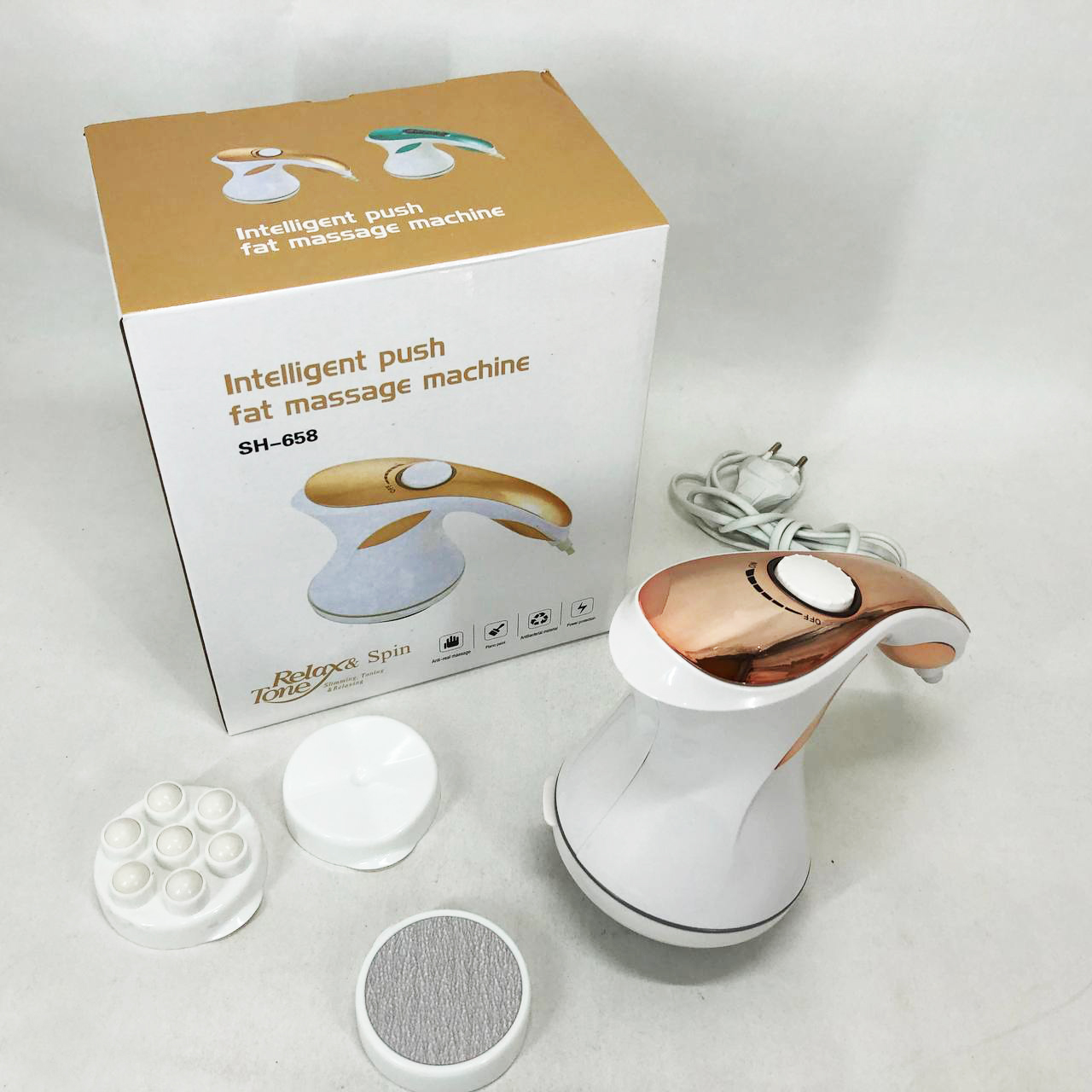 Домашній масажер Relax Tone Spin SH-658 зручно застосовувати на плечах і передпліччі, ногах, руках, а також на м’язах живота, і стегнах, щоб зменшити целюліт на сідницях і поліпшити кровообіг. Він, як Ваш особистий масажист, робить глибокий масаж тіла, прибирає целюліт, звільняючи від втоми і гармонізуючи загальний стан організму.