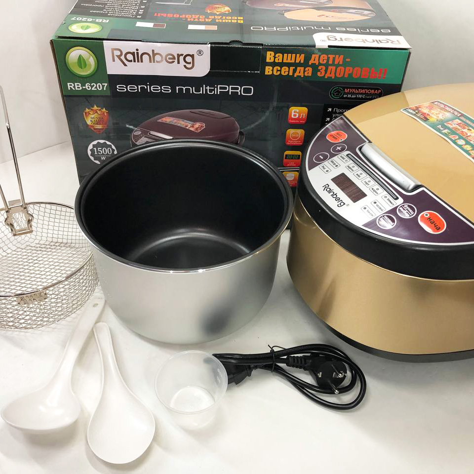 Мультиварка Rainberg RB-6207 – багатофункціональний помічник на кухні з програмним управлінням, призначений для приготування страв у режимах автомат і напівавтомат.