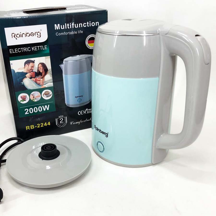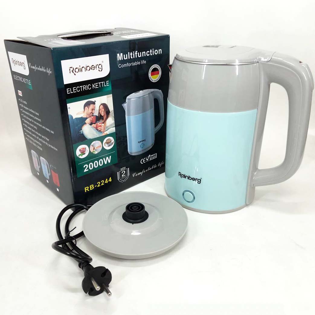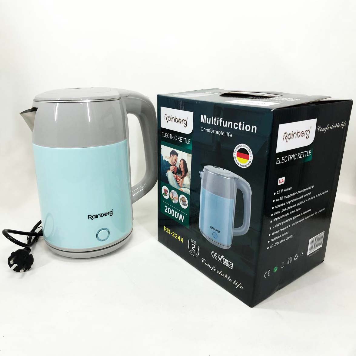 Електрочайник дисковий Rainberg RB-2244 2000 Вт 2л, стильний електричний чайник. Колір: блакитний