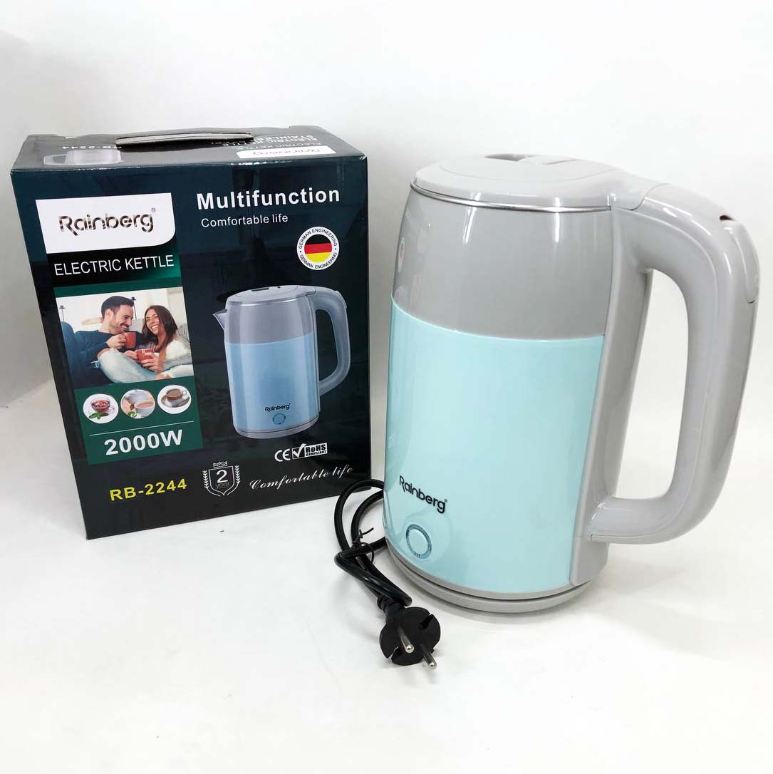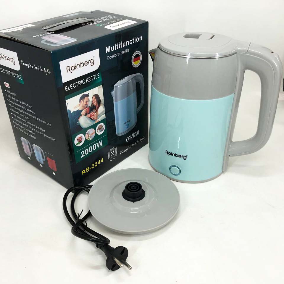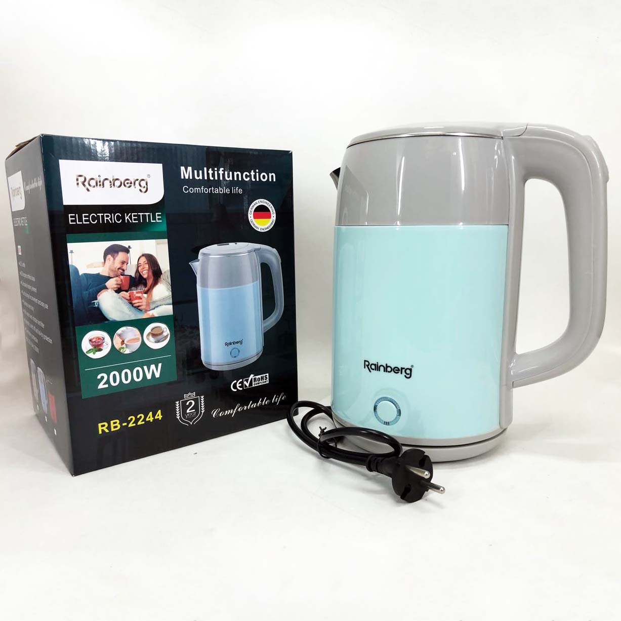 Електрочайник дисковий Rainberg RB-2244 2000 Вт 2л, стильний електричний чайник. Колір: блакитний