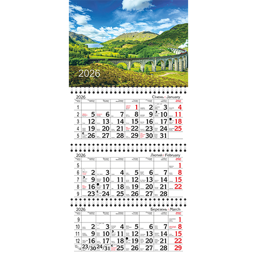 Календар квартальний настінний на 3 пружини 2026 "Міст" (R44405)