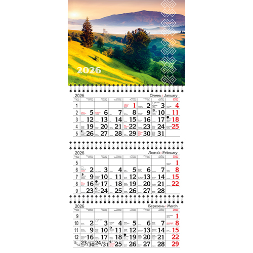 Календар квартальний настінний на 3 пружини 2026 "Гори" (R44403)