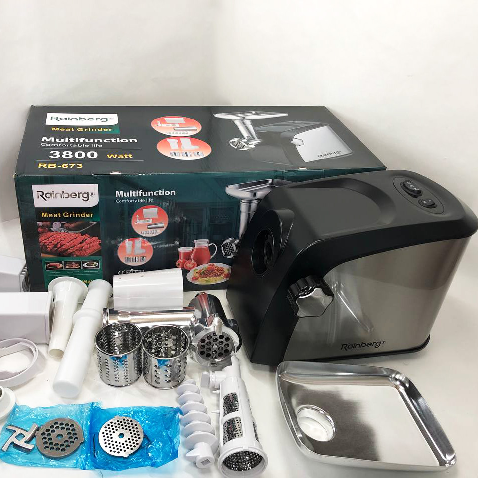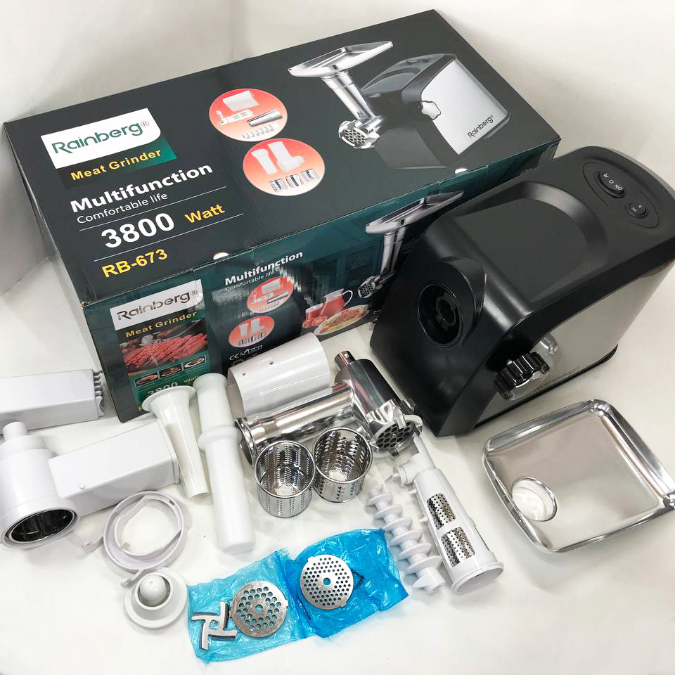 М’ясорубка Rainberg RB-673 3000 Вт – це ваш надійний напарник та помічник на кухні. Якісна та доступна за своєю вартістю модель електричної м’ясорубки від китайської фірми Rainberg призначена для приготування домашнього фаршу з м’яса різних видів, овочів, риби, а також грибів, терками та шатківницею