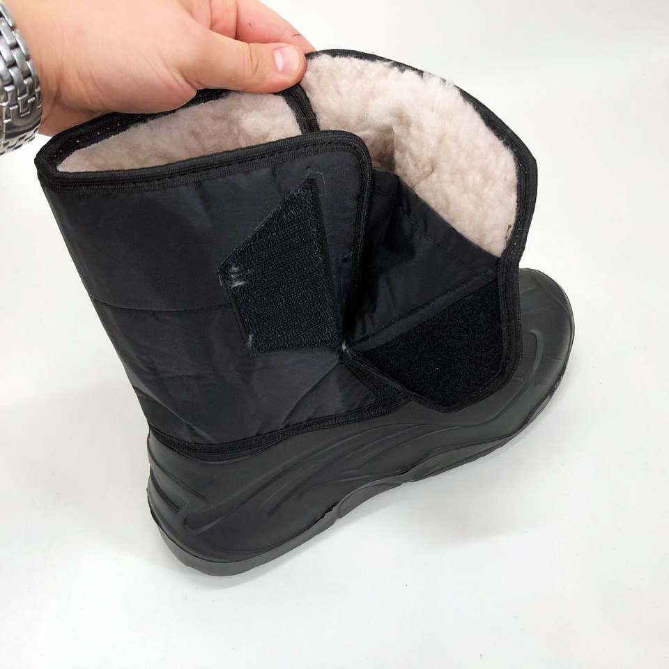 Чоловічі утеплені чоботи — надійний вибір для холодної та вологій зими. Нижня частина виготовлена з водонепроникного полімерного матеріалу, який ефективно захищає від снігу, калюж і бруду. Верхня частина виконана з прошитої тканини, яка не тільки утеплює, але й додає гнучкості та зручності при ходьбі. М’яка внутрішня підкладка з хутра зберігає тепло навіть у морозні дні.