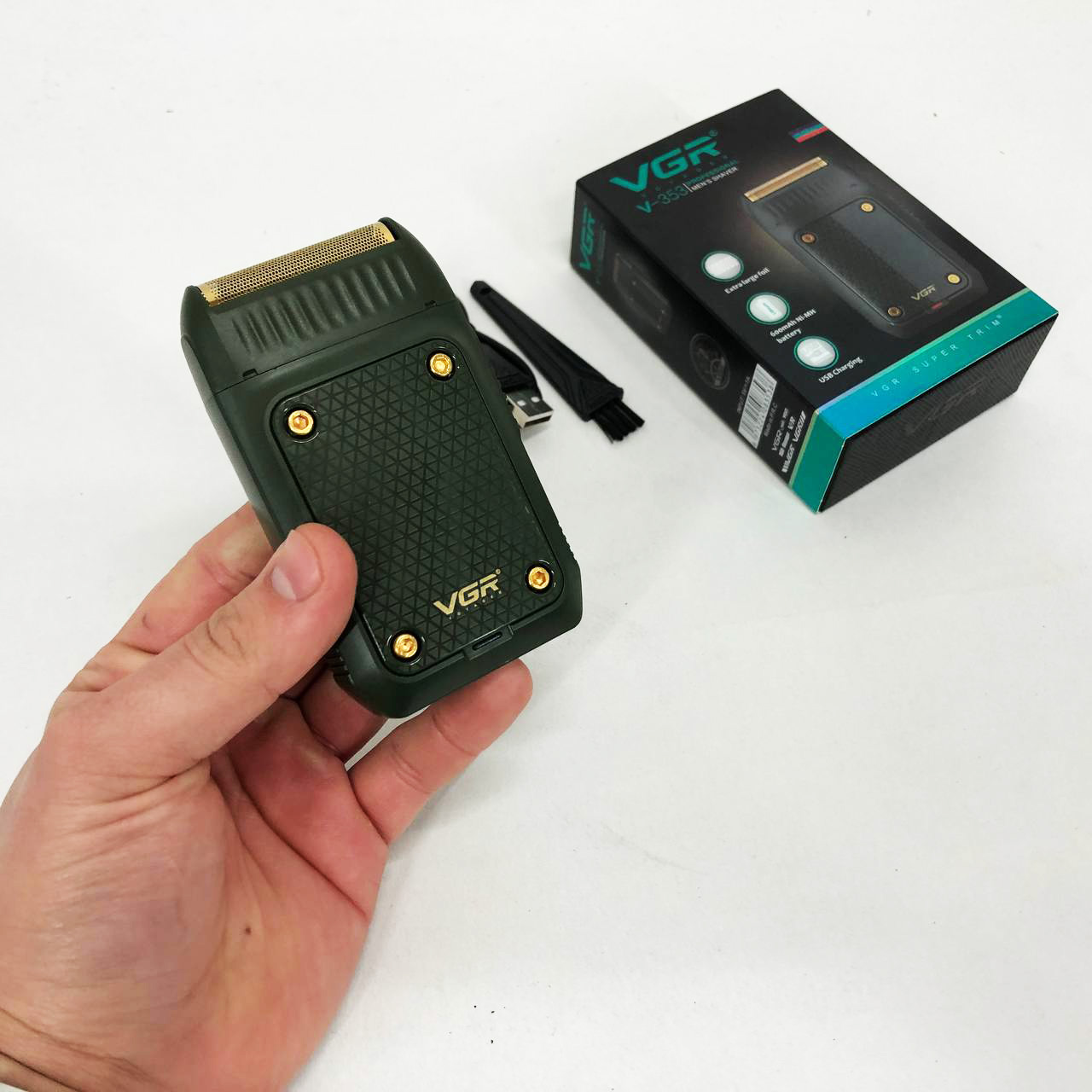 Електробритва портативна VGR V-353 професійна бритва шейвер для гоління триммер. Колір: зелений