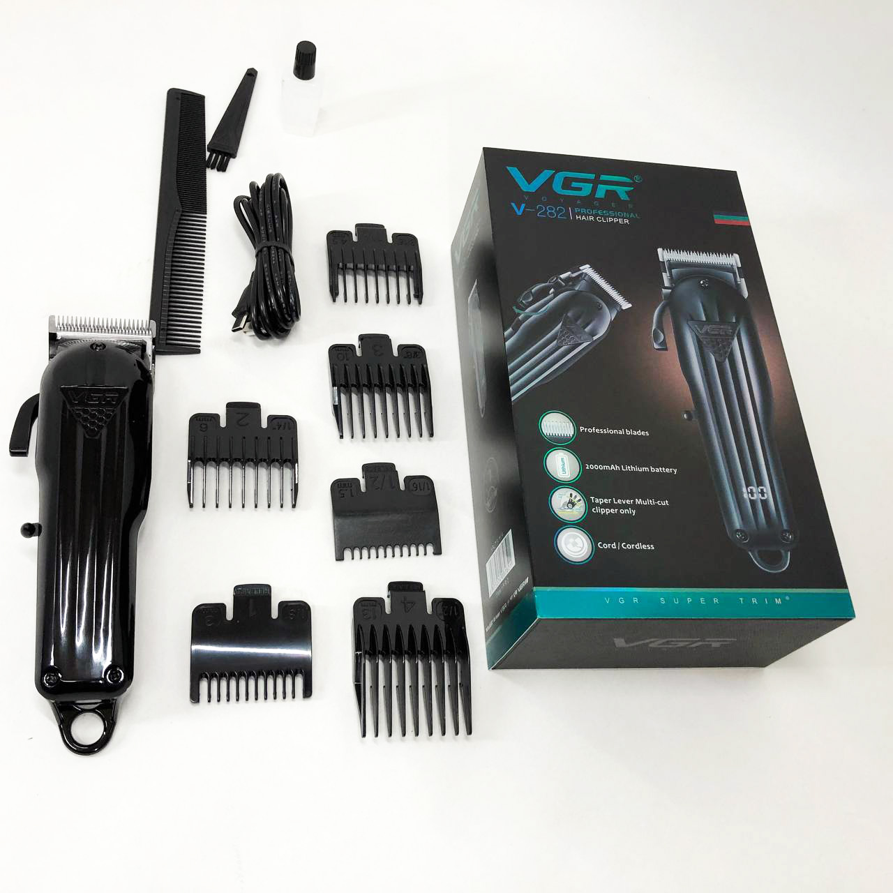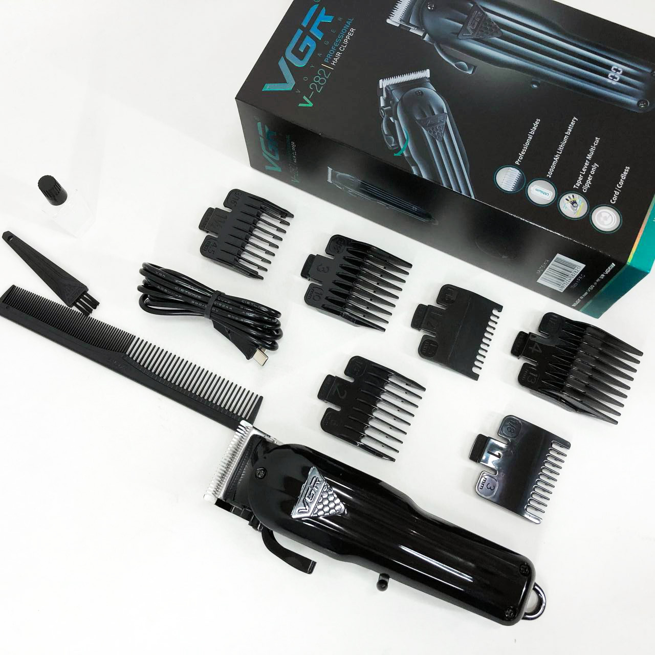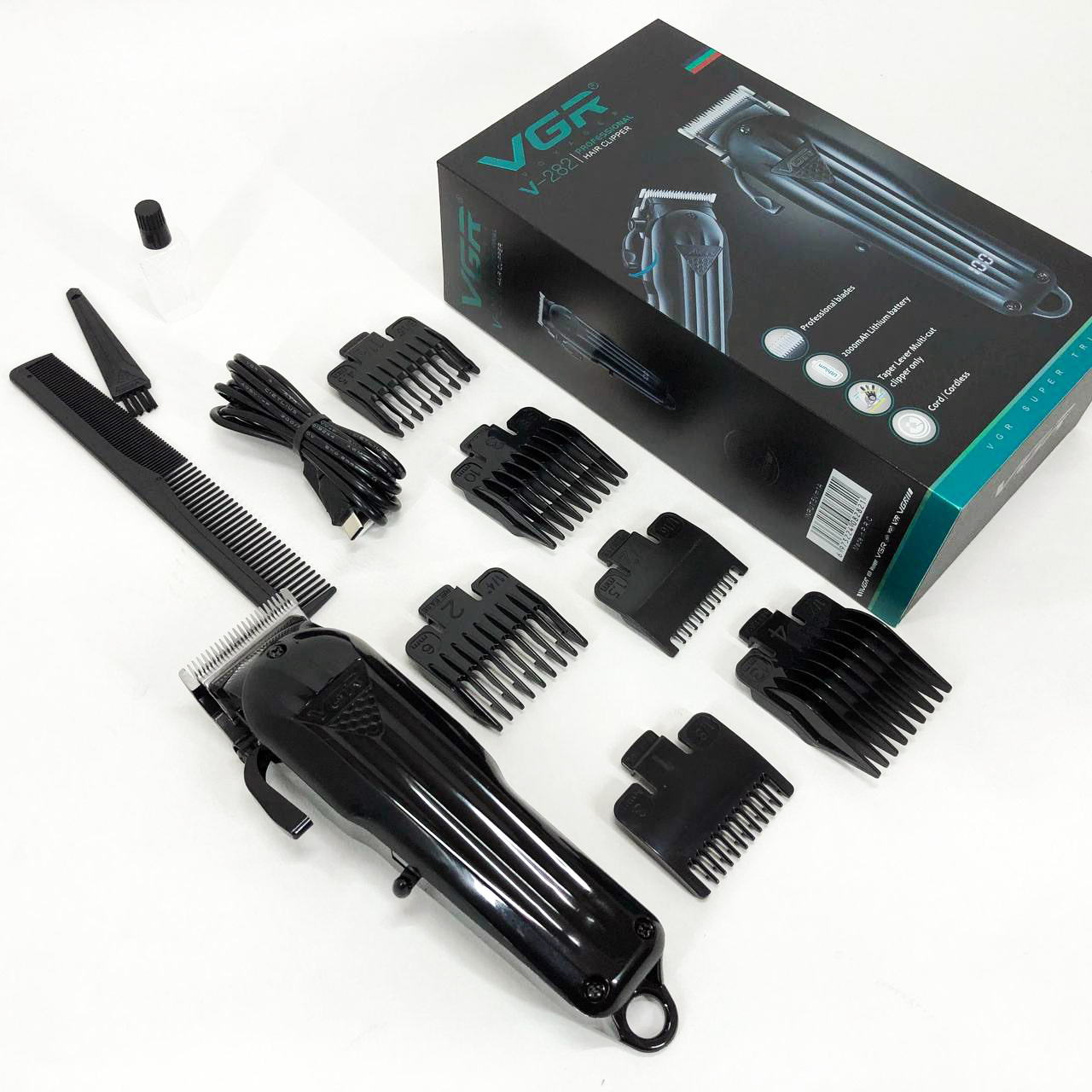 Могутній роторний двигун(6400-6900 об/хв) зі збільшеним крутним моментом. VGR V-282 має професійні ножі. Відрізняються своєю твердістю і довговічністю, що дозволяє машинці справлятися з найгустішим і жорстким волоссям.
