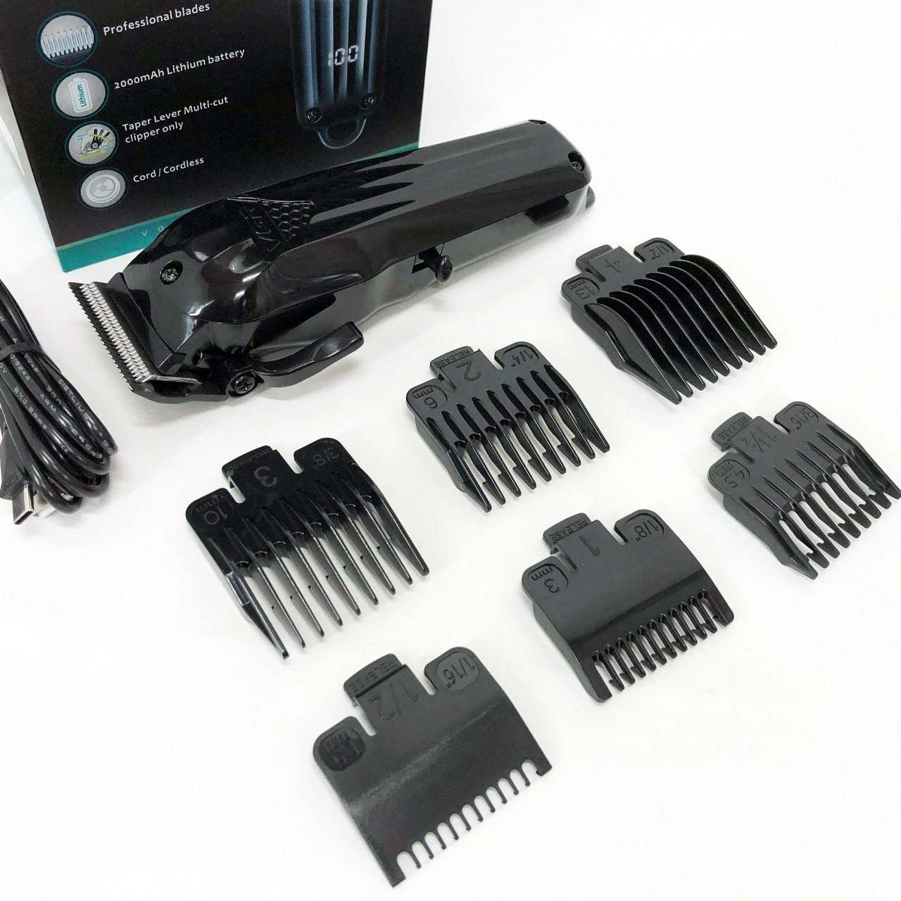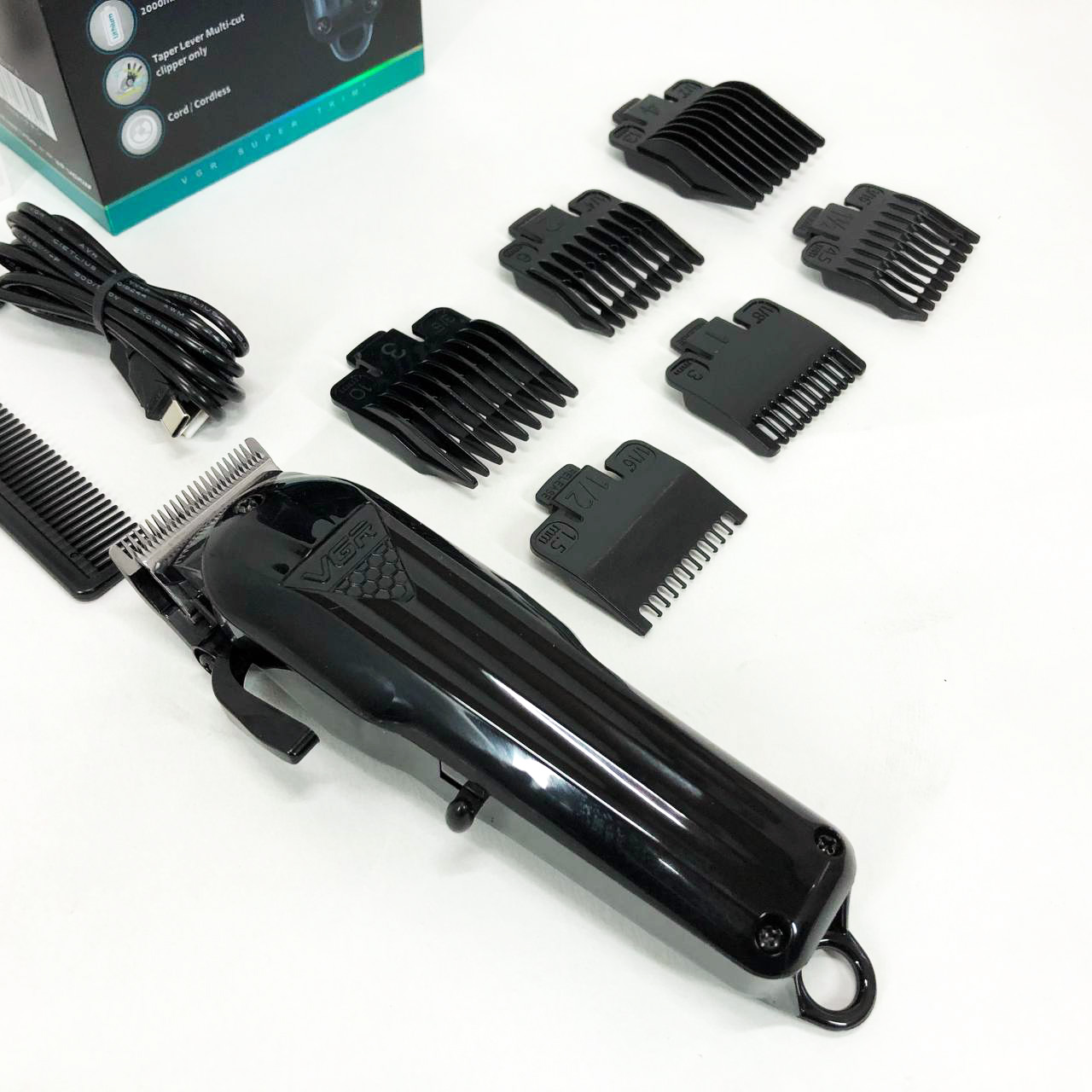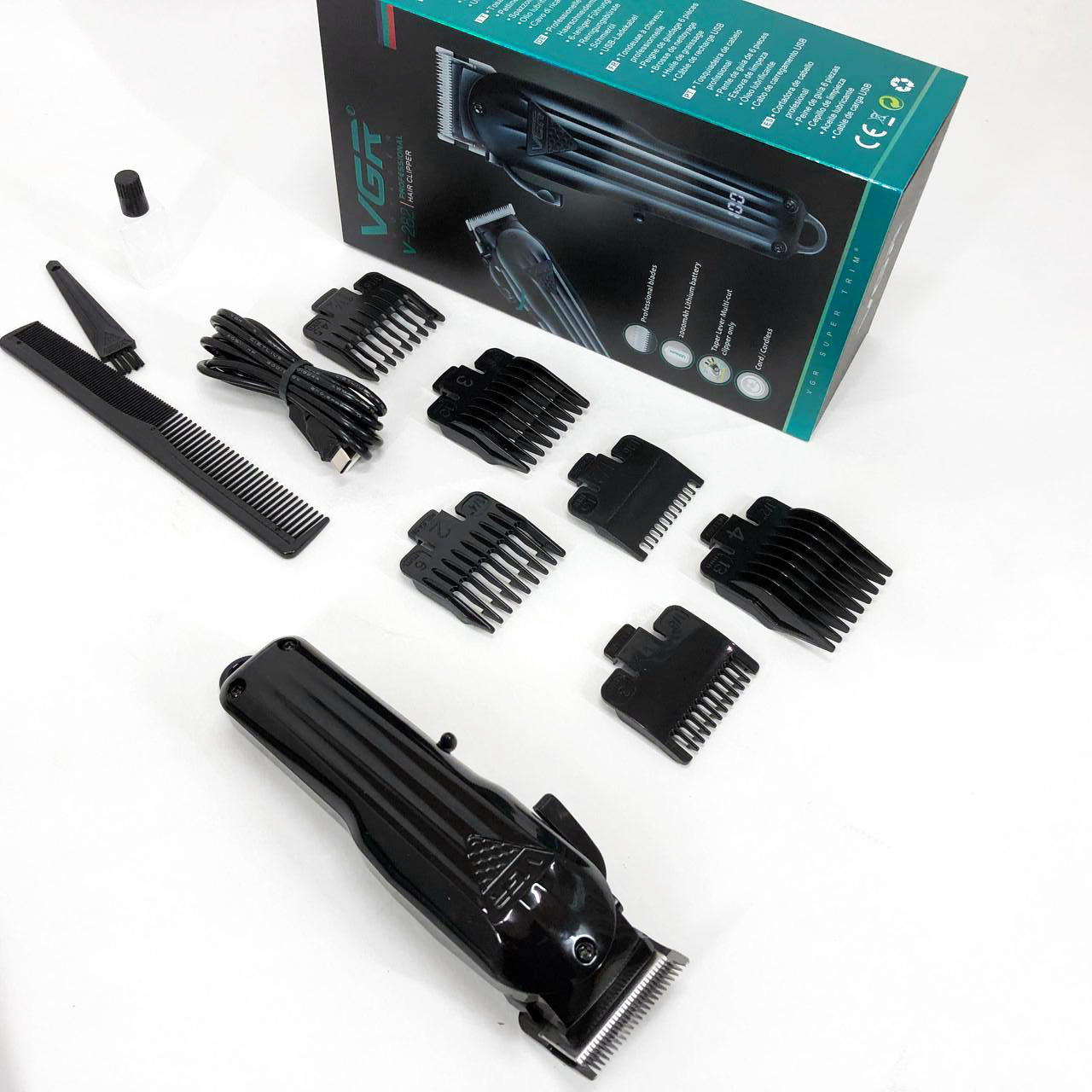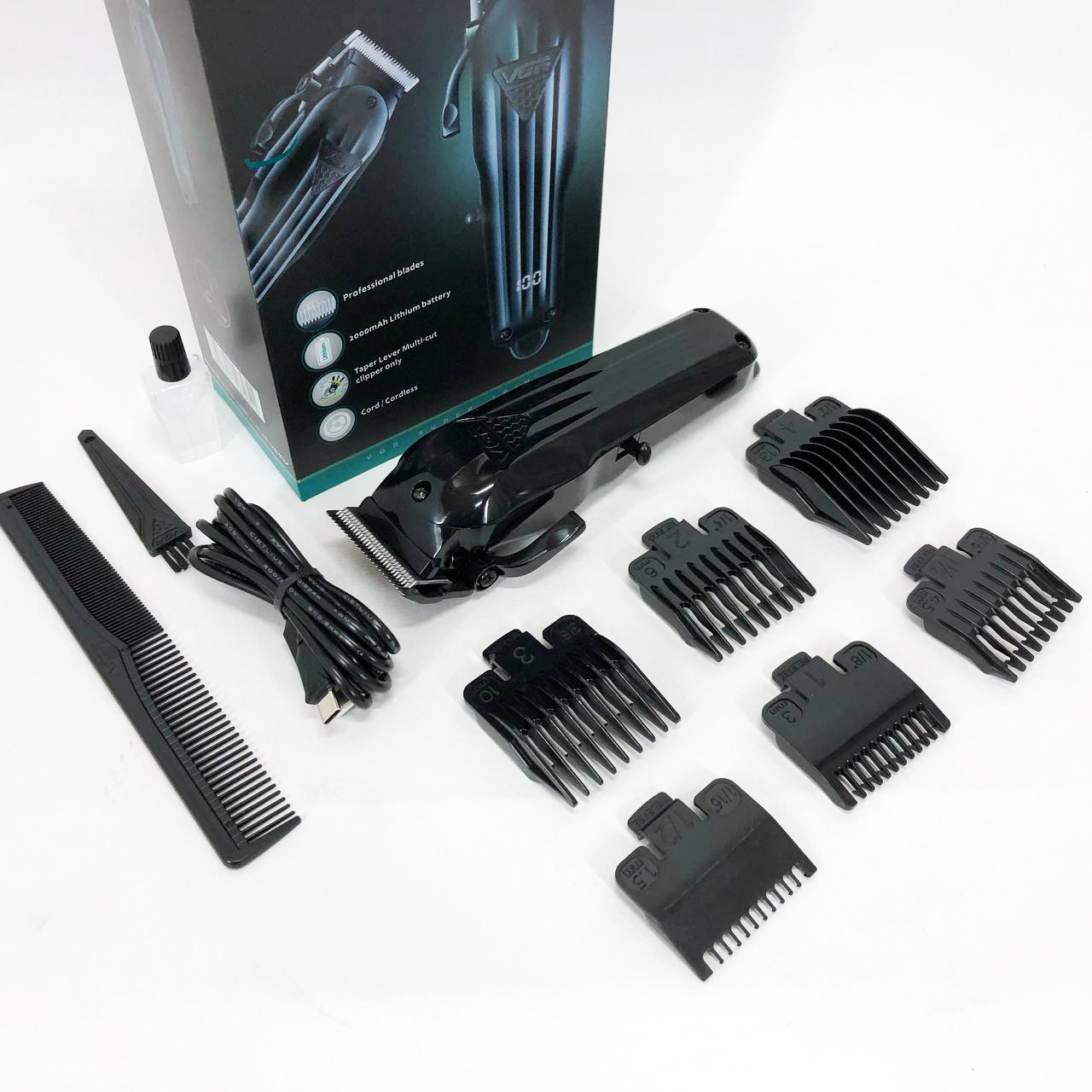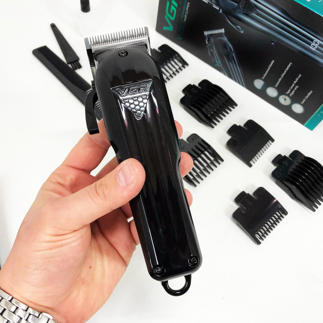 Машинка для стрижки волосся VGR V-282 акумуляторна професійна підстригальна LED, 6 насадок