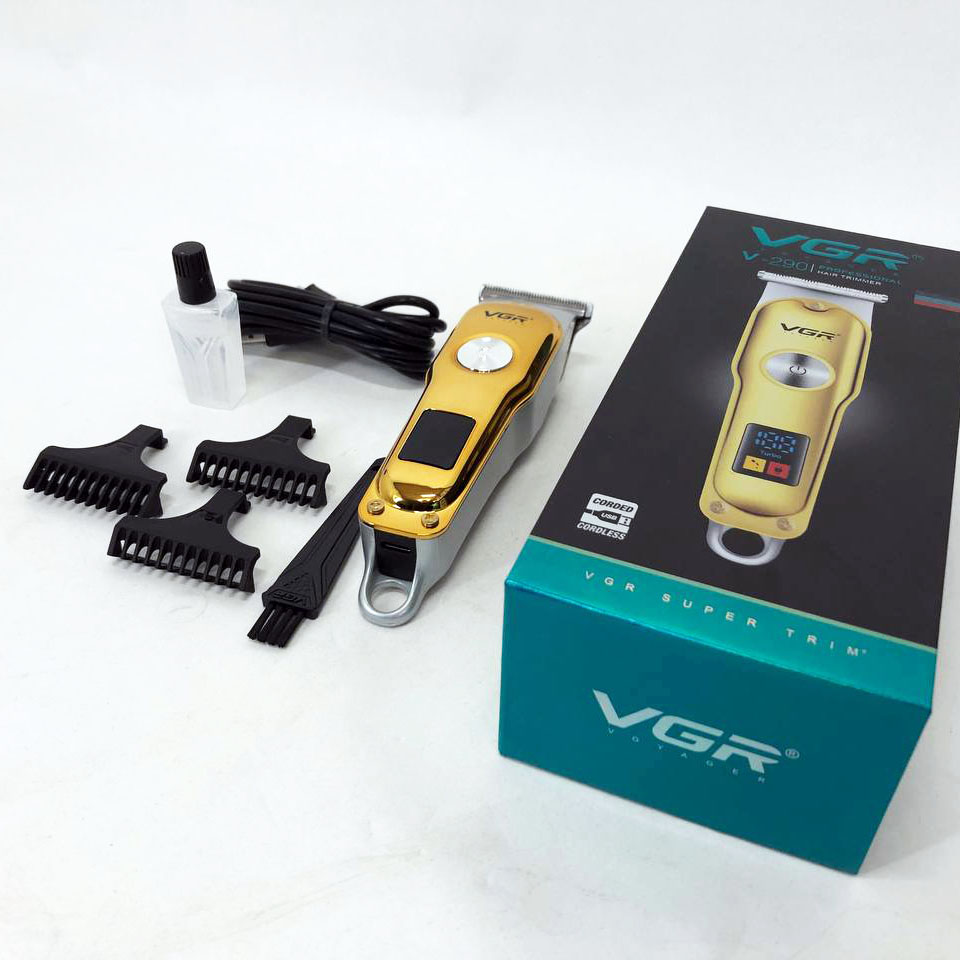 Тример для волосся та бороди VGR V-290 LED Display 3 насадки, машинка для стрижки волосся домашня