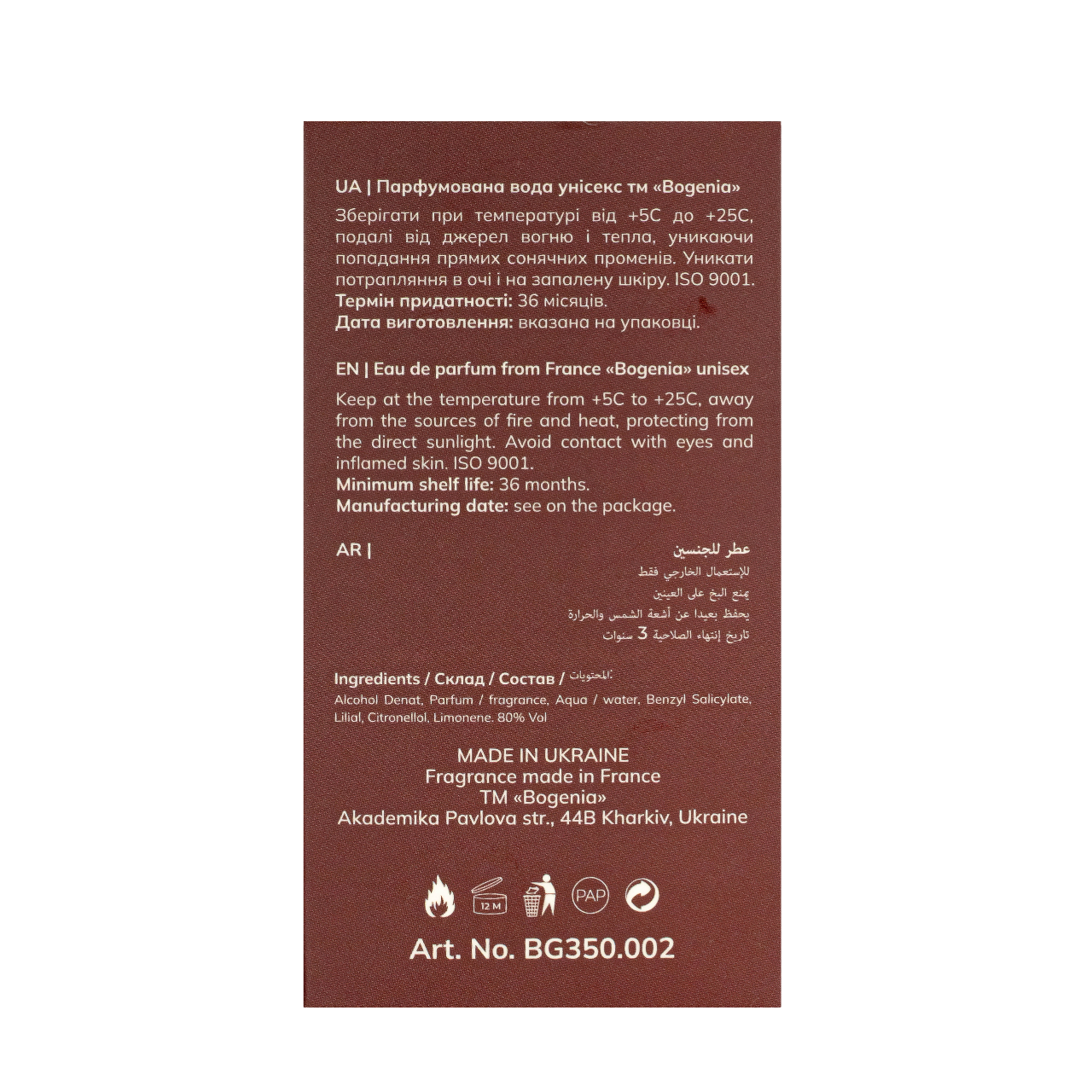Парфумована вода для жінок Bogenia Cherry & Almond, 50 млПарфуми Bogenia Cherry & Almond – це квітковий шедевр у кожній ноті ароматичної композиції. Насолоджуйтеся соковитими та соковитими акордами вишні, ніжністю мигдалю, теплотою бобів тонка та солодкою ваніллю.Цей стійкий та шлейфовий аромат створює неповторну атмосферу розкоші та індивідуальності. Пориньте у світ яскравих і насичених запахів, які супроводжують вас протягом усього дня, залишаючи за собою неймовірний слід.Bogenia Cherry & Almond – ваш вибір, якщо ви цінуєте витонченість та стійкість у кожному акорді.Тип аромату: квітковий.Ноти: вишня, мигдаль, боби тонка, ваніль.Об'єм: 50 мл