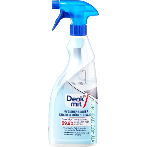 Засіб для чищення кухні Denkmit без зусиль видаляє жир і бруд з усіх кухонних поверхонь. Спеціальний рецепт також знищує до 99,9% бактерій. Засіб для гігієни кухні також ідеально підходить для чищення холодильників і забезпечує гігієнічну чистоту на всій кухні.