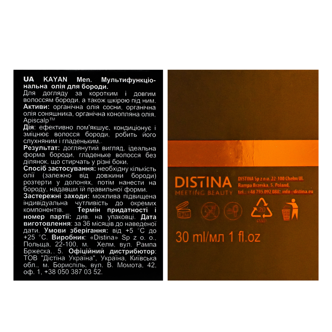 легке укладання.Спосіб застосування: Небагато олії Kayan Men розтерти в долонях. Нанести на бороду і надати їй правильної форми.Об'єм: 30 мл