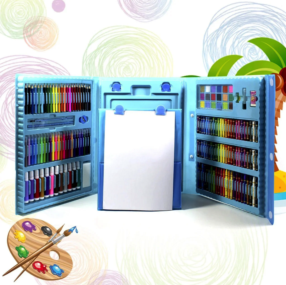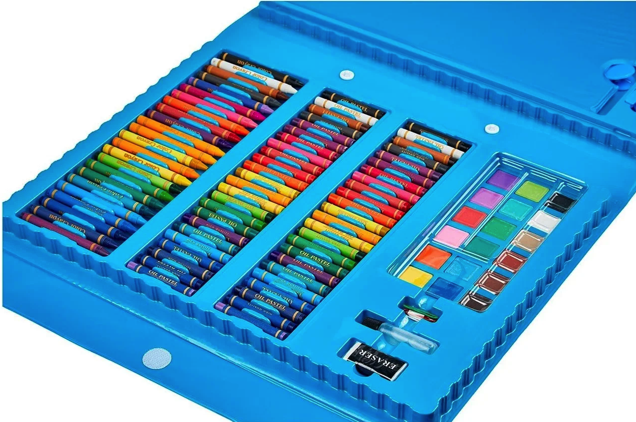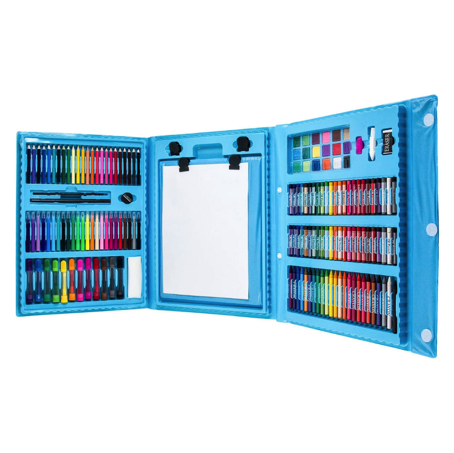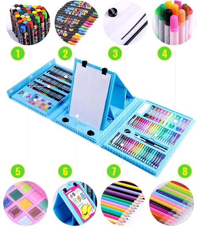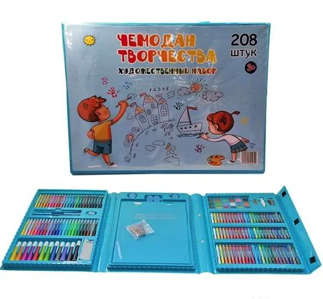 Детский набор для рисования на 208 предметов - прекрасный подарок для ребёнка. Набор для рисования в чемоданчике 208 предметов подарит Вашему ребенку море положительных эмоций.Любовь к различным аксессуарам для рисования, раскрашивания и отражения собственных фантазий на бумаге, проявляется у всех детей, начиная с самого юного возраста. Чемоданчик в виде раскладного кейса продуман до мелочей. Он имеет ячейки, которые хранят в себе все самое необходимое для маленького художника.Каждый предмет сложен в свою ячейку, а это значит, что все будет под рукой и никогда не потеряется. В сложенном виде кейс напоминает чемоданчик, который легко можно использовать как дома, так и в дороге. Кейс раскладывается просто, как книга. Компактный чемоданчик превращается в полноценное удобное рабочее место юного художника.Чемоданчик для рисования удобно хранить и брать с собой.Преимущества:Набор для рисования в чемоданчике;