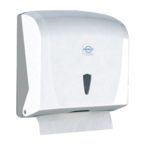 Класичний диспенсер паперових рушників виготовлений з високоякісного пластику ABS білого кольору і призначений для рушників типу Z і V з довжиною пачки до 26,5 см. і шириною - до 13 см. Може вмістити 400 аркушів.