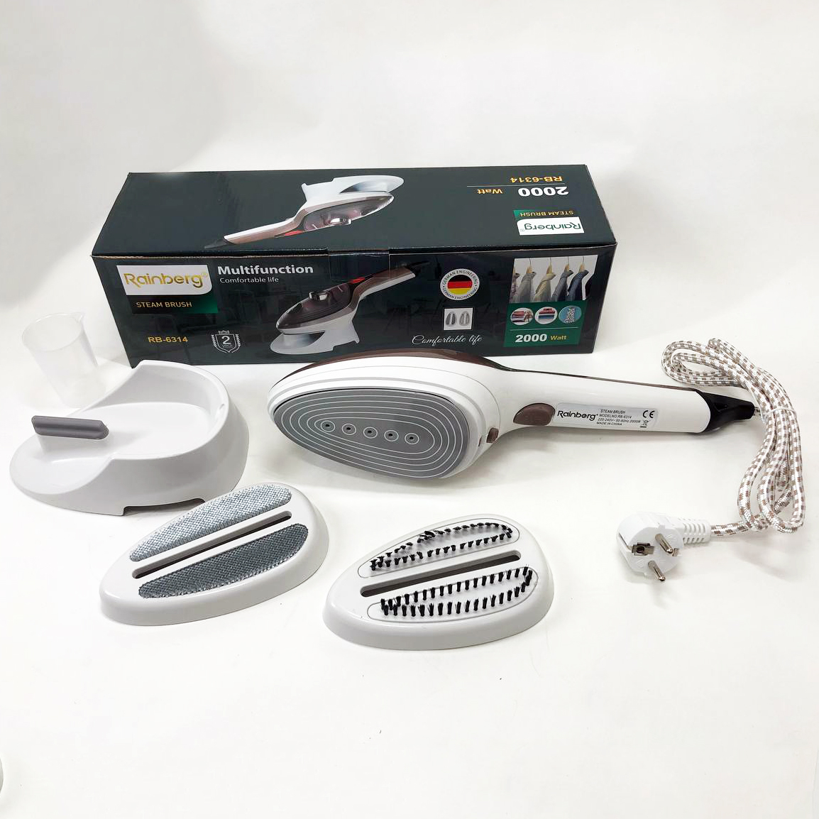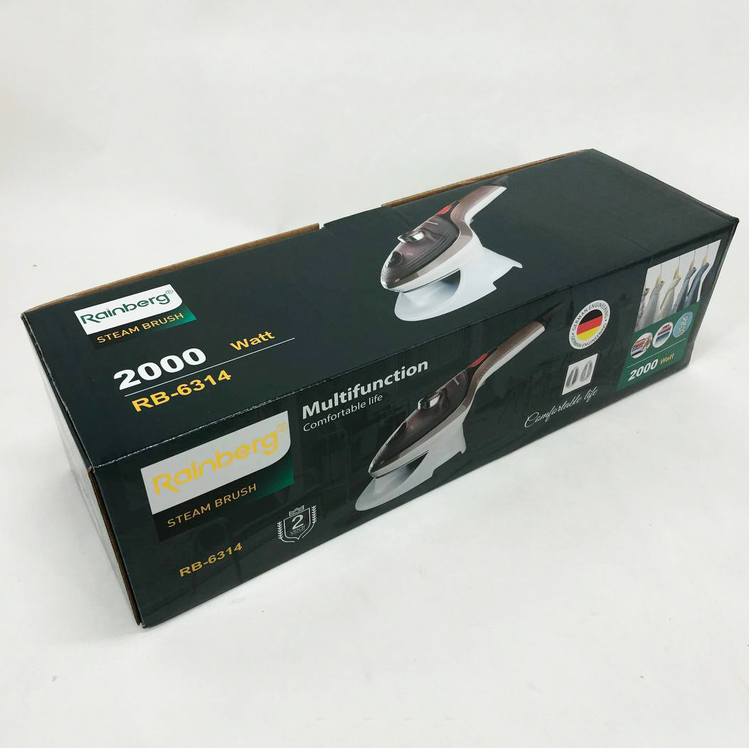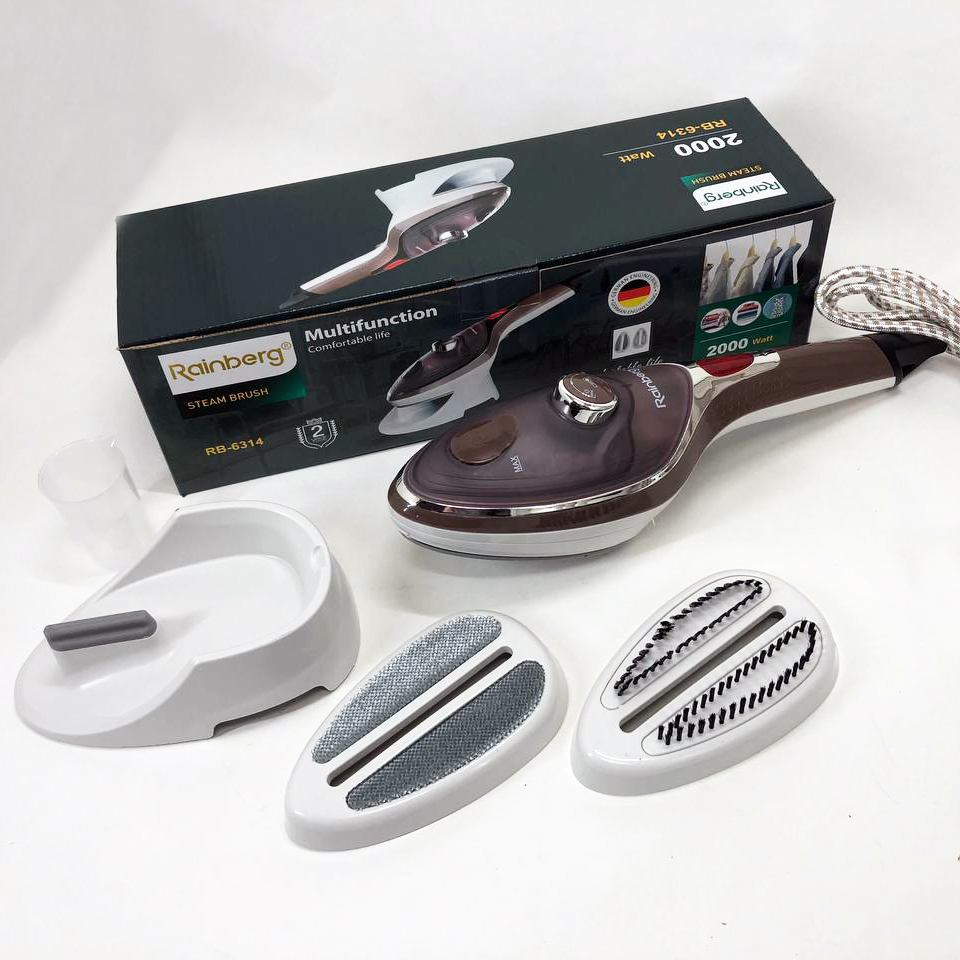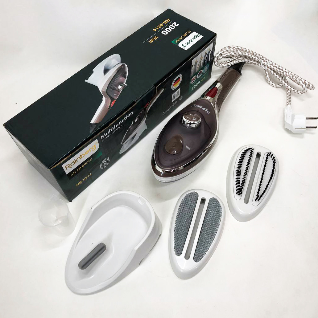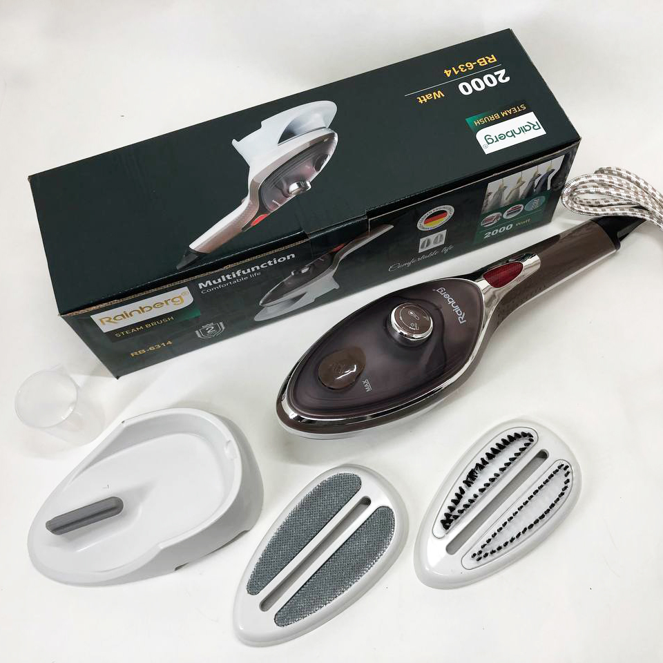 Ручний відпарювач для одягу Rainberg RB-6314 2000 Вт з двома змінними насадками можна використовувати вдома, в офісі або в подорожі. Він виробляє безперервний потік пари, який добре проникає в тканину і розпрямляє складки, чистить, дезінфікує та позбавляє неприємного запаху. Багатофункціональність – найголовніша якість цього побутового приладу. Він створений для ефективного очищення, дезінфекції та знежирення абсолютно різних поверхонь, незалежно від їх типу та призначення і може легко застосовуватися як для чищення одягу, так і для догляду за м’якими меблями, миття вікон і кахлю. Переваги: Відпарювач має компактні розміри та невибагливий в обслуговуванні, ідеальний для використання як у домашніх умовах, так і в поїздках. Відпарювач надає можливість швидкого та якісного прасування без незручної та громіздкої прасувальної дошки. У відпарювача зручна ручка, що не нагрівається.