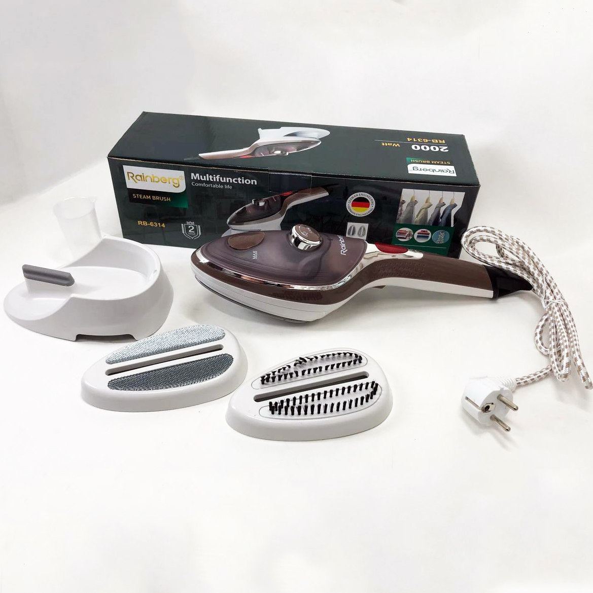 Ручний відпарювач для одягу Rainberg RB-6314 2000 Вт із двома змінними насадками, парова щітка