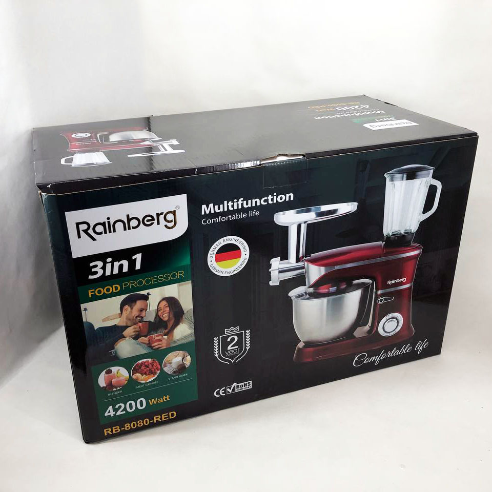 Багатофункціональний кухонний комбайн Rainberg RB-8080 Тістоміс, М'ясорубка, Блендер, Потужний блендер