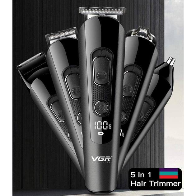 Професійна бездротова машинка для стрижки волосся VGR V-175 тример для бороди та вусів з насадками