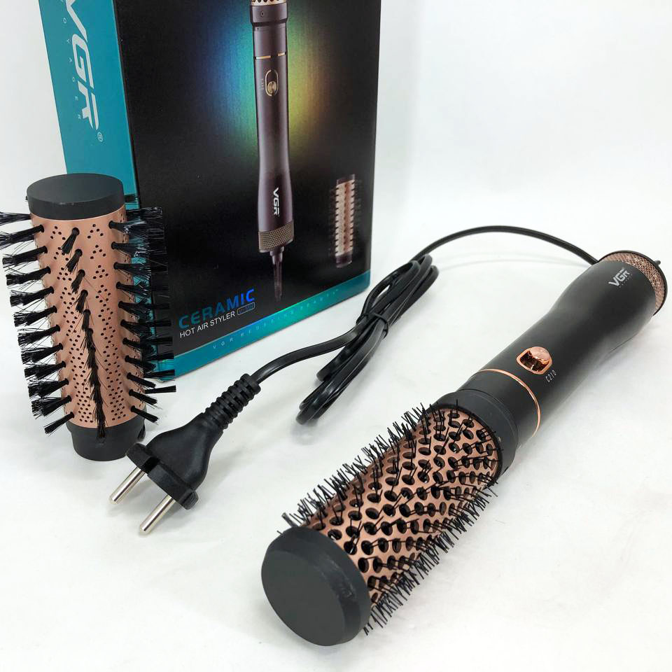 Фен гребінець VGR V-559 для завивки та сушіння волосся керамічне покриття 2 швидкості 2 насадки