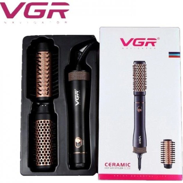 Фен-щітка для укладання волосся VGR V-559 підходить для формування графічних локонів і укладання легкими хвилями, за його допомогою можна швидко просушити густе волосся або красиво укласти чубчик. Незамінний прилад і для роботи з кучерявим волоссям.
