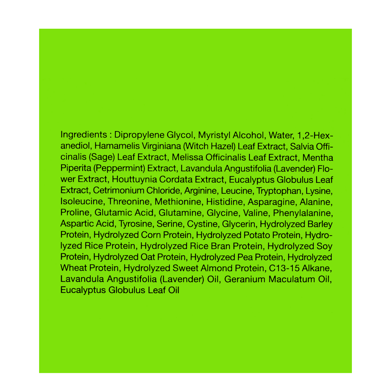 рослинні олії лаванди, герані плямистої, евкаліпту кулястого.Спосіб застосування:Пряме нанесення: рівномірно розподіліть продукт на вологе волосся і залиште на 5 хвилин, потім змийте теплою водою.