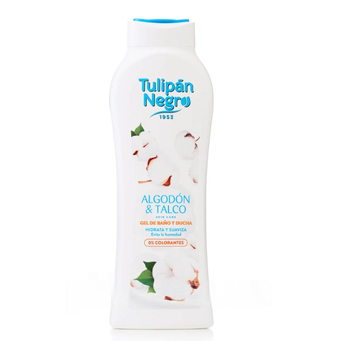 Гель для душу Tulipan Negro "Бавовна та тальк"Ідеальний гель, щоб відчути себе у бавовняній хмарі. З натуральними екстрактами бавовни та тальку, які зволожують, пом'якшують та запобігають зневодненню шкіри. Аромат тальку розслабить та заспокоїть шкіру. Його регенеруючі та поживні властивості запобігають попаданню вологи в шкіру. Не містить парабенів.Об'єм: 650 мл