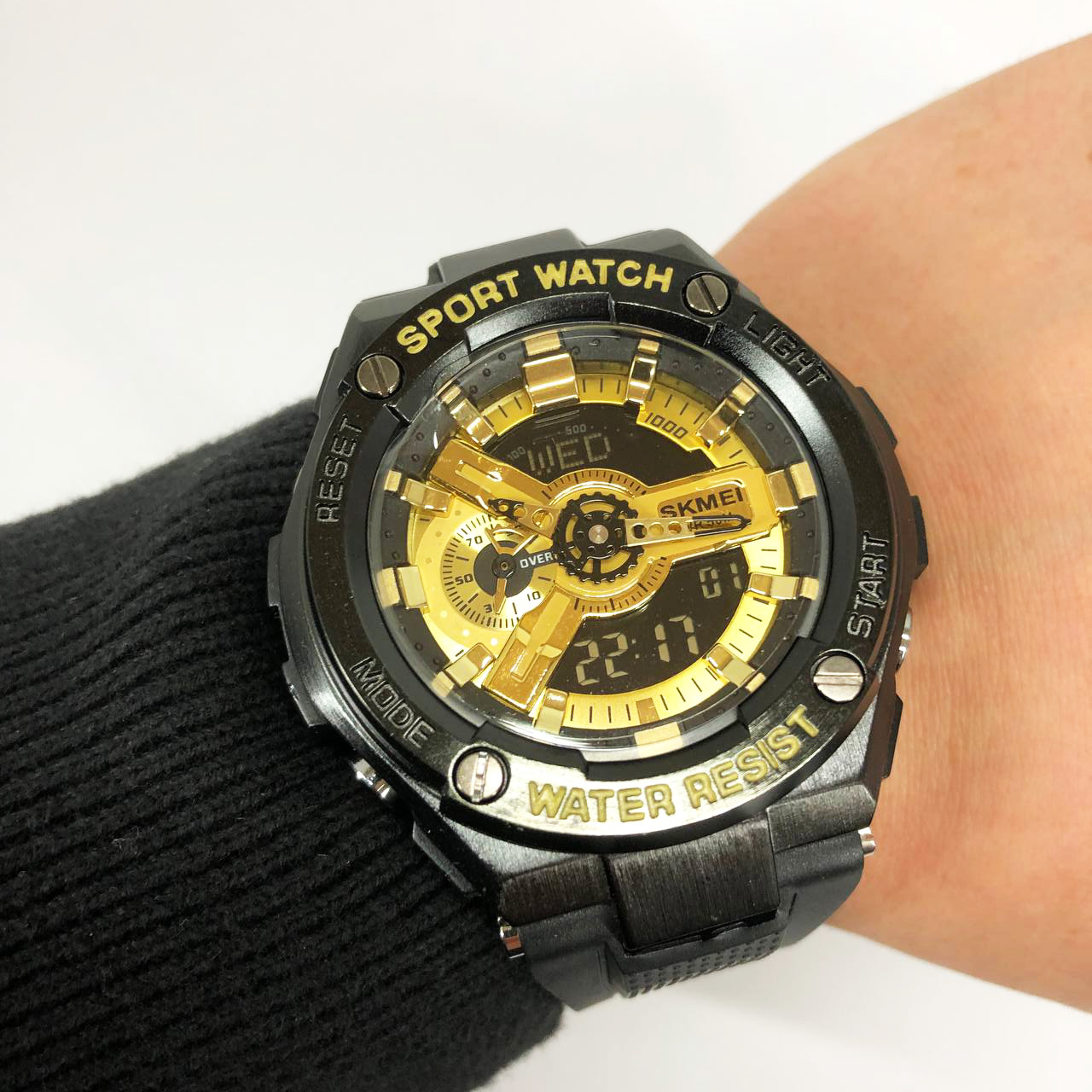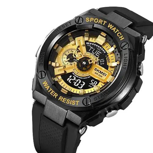 Годинник SKMEI 2101BKGD — це яскравий акцент у вашому стилі, що поєднує сміливий золотий циферблат з чорним корпусом. Модель виконана у спортивному дизайні з комбінованим типом індикації, що дозволяє одночасно користуватися стрілками та цифровим дисплеєм. Такий годинник стане не лише практичним аксесуаром, а й виразною деталлю образу.