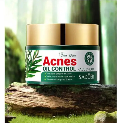 Крем антиакне для жирної та проблемної шкіри обличчя Sadoer Tea Tree Acnes Oil ControlКрем для жирної шкіри обличчя з екстрактом чайного дерева допоможе вам подолати акне. Засіб для догляду за проблемною шкірою зволожує й утримує вологу всередині дерми, робить шкіру ніжною і гладенько на дотик, прибирає верхній шар епідермісу, що огрубів, зменшує кількість висипань і звужує пори. Засіб покращує вигляд жирної та проблемної шкіри, зменшує жирність та кількість вугрів, прищів.Діючі компоненти антиакне крему:масло чайного дерева;